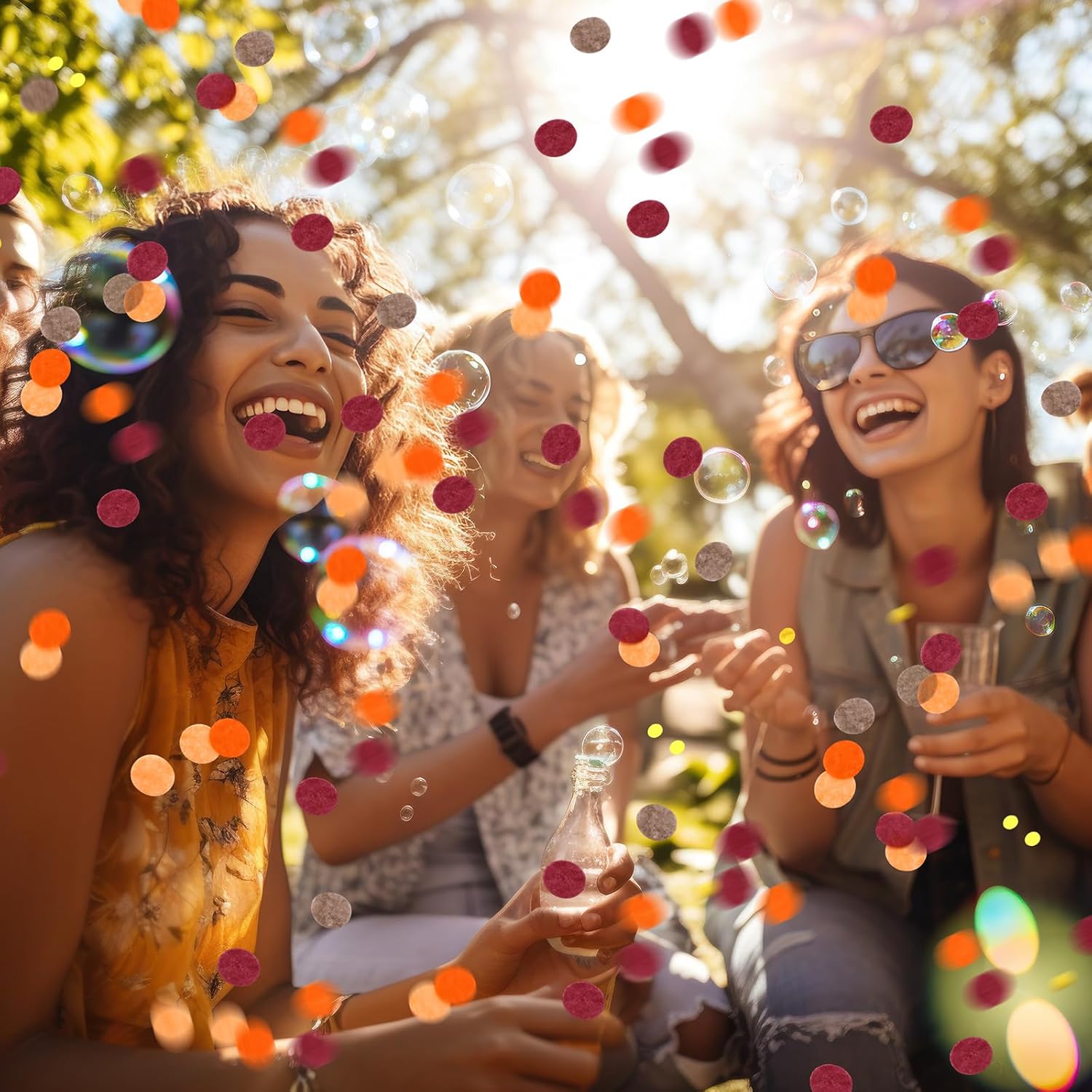 - Vibrant Fall Color Palette for Festive Tables: this 115 piece confetti set features maroon, warm orange, red wine, and golden etc, crafted from fall color tissue paper; Each 1" circular piece adds a pop of seasonal charm to tables, making it the confetti for tables at Thanksgiving dinners, harvest parties, or autumn weddings