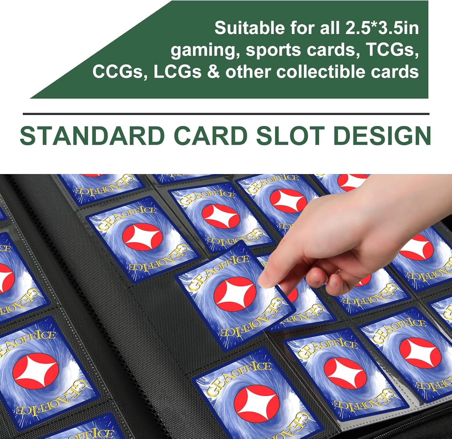 GEAoffice Premium 1000 Trading Card Binder, Large Side Loading 16 Pocket Card Collection Binder Album Folder for MTG, TCG & Sports, Green