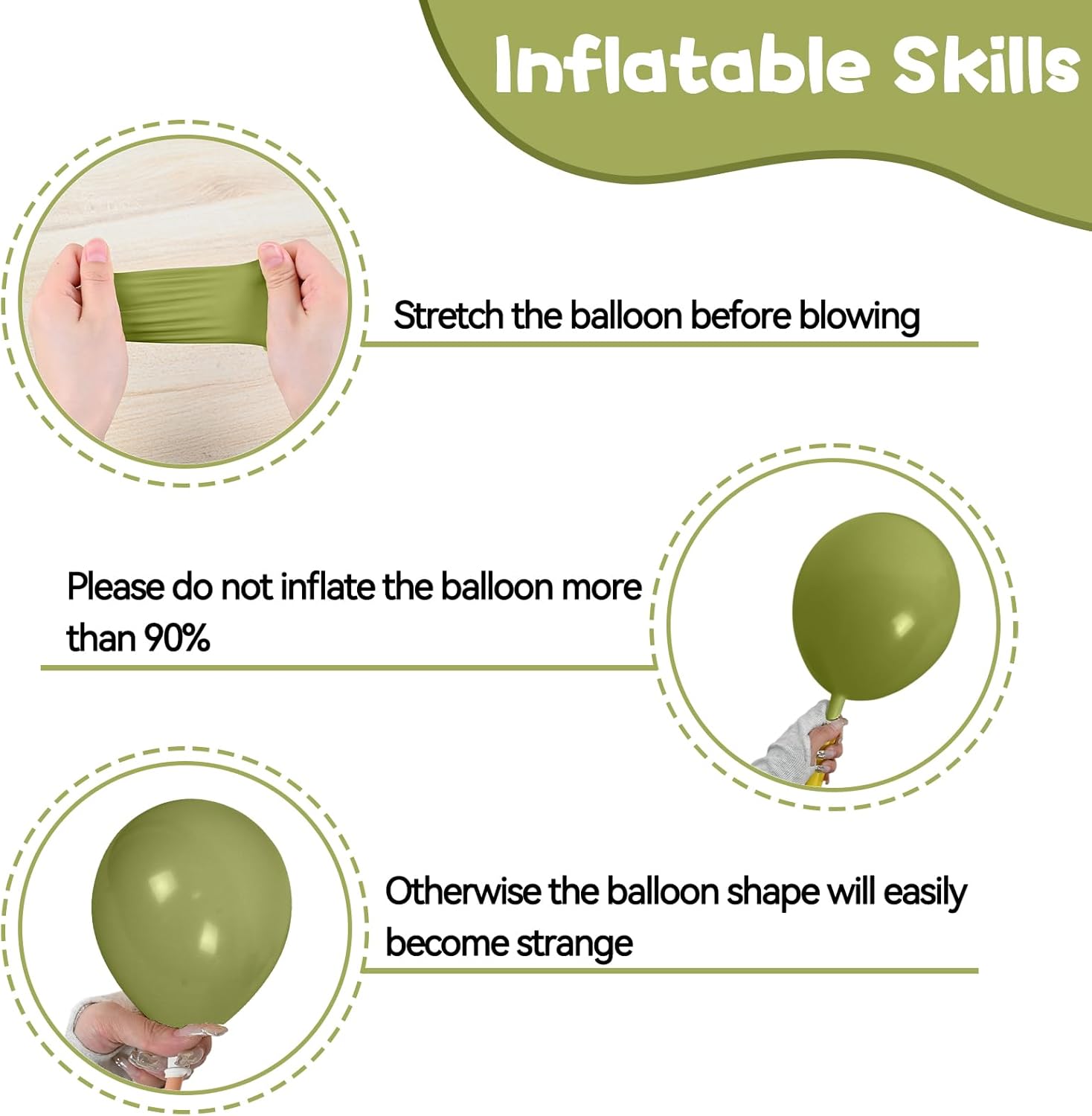 - Balloon material: All balloons are made of natural latex, and each balloon has been strictly hand-tested. The balloons are elastic, non-toxic, harmless and safe. They can be filled with air or helium, and it is recommended to use with a balloon pump