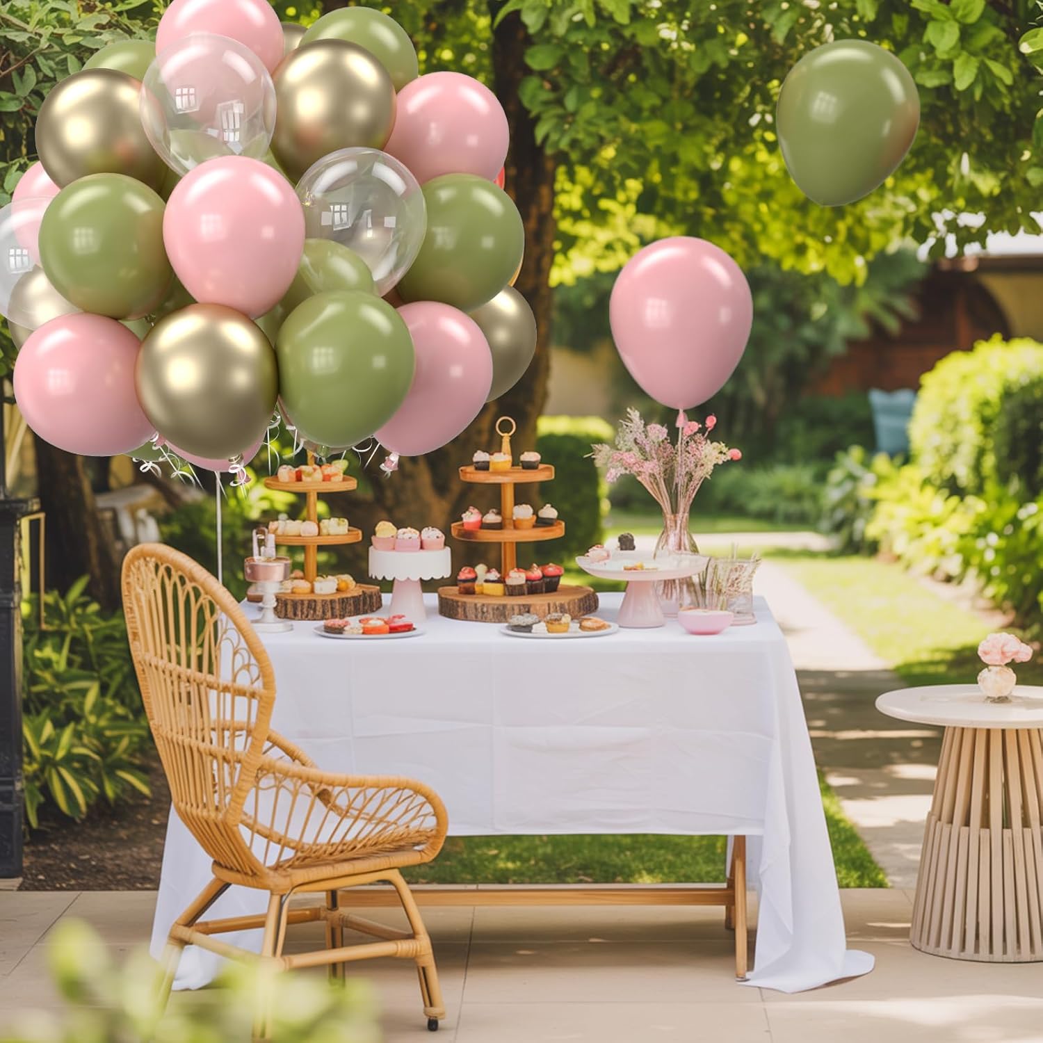 Retro Sage Green and Pink Balloons, 12 inch Metallic Gold Olive Green Pink Clear Latex Balloon for Jungle Safari, Christmas, Nutcracker, Woodland, Birthday Party Decoration
