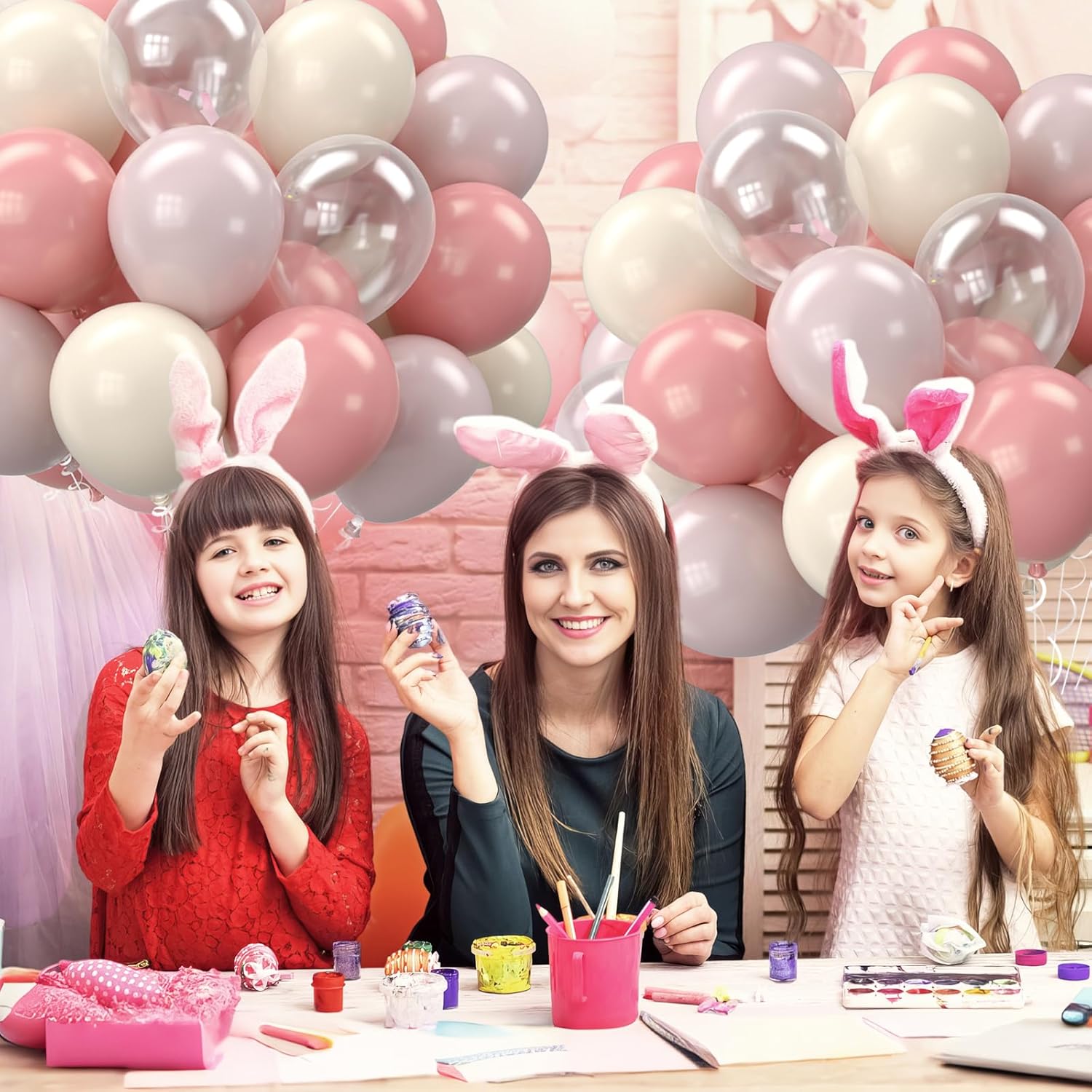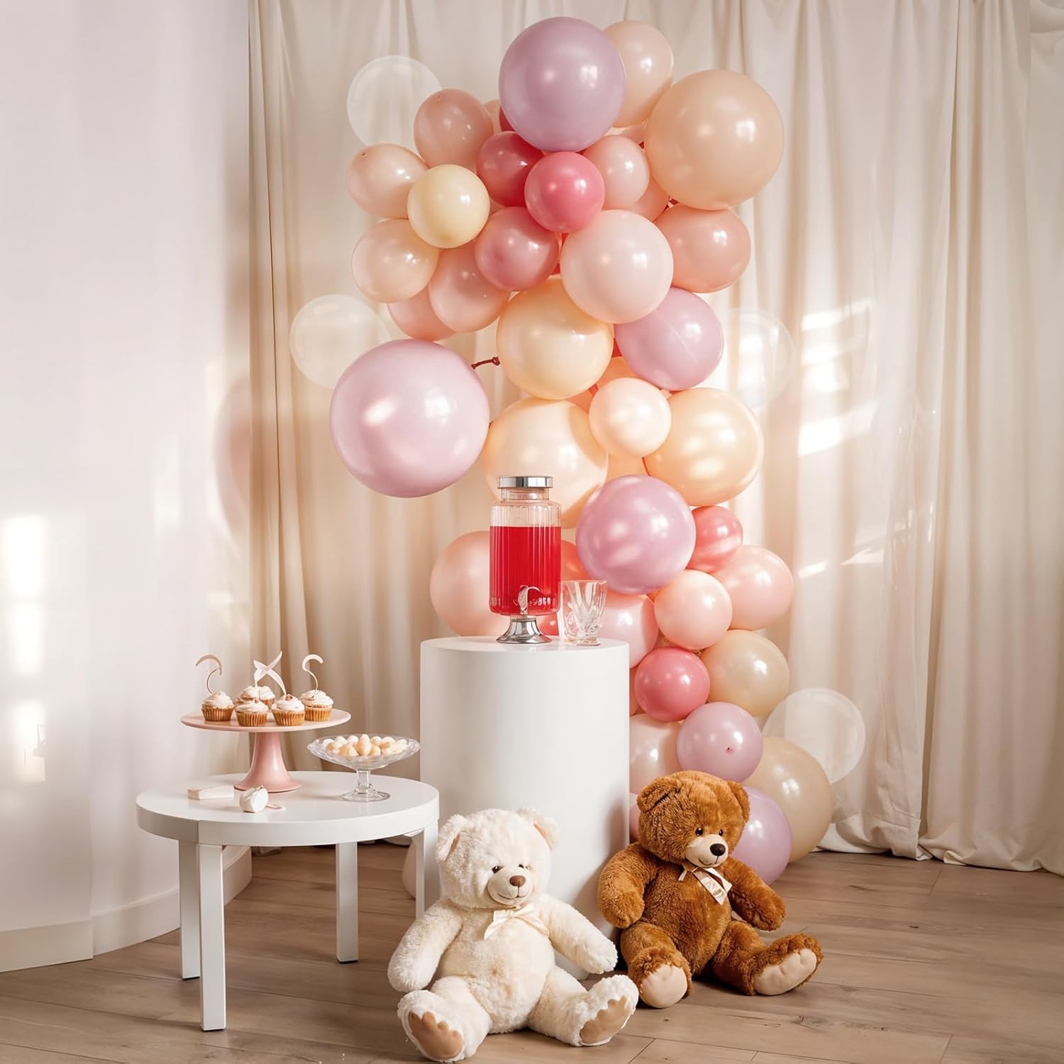 Pink and White Balloons, 12 Inch Pastel Pink Beige Cream White Clear Latex Balloon for Girls Birthday Bachelorette Party Bridal Baby Shower Party Decorations Supplies