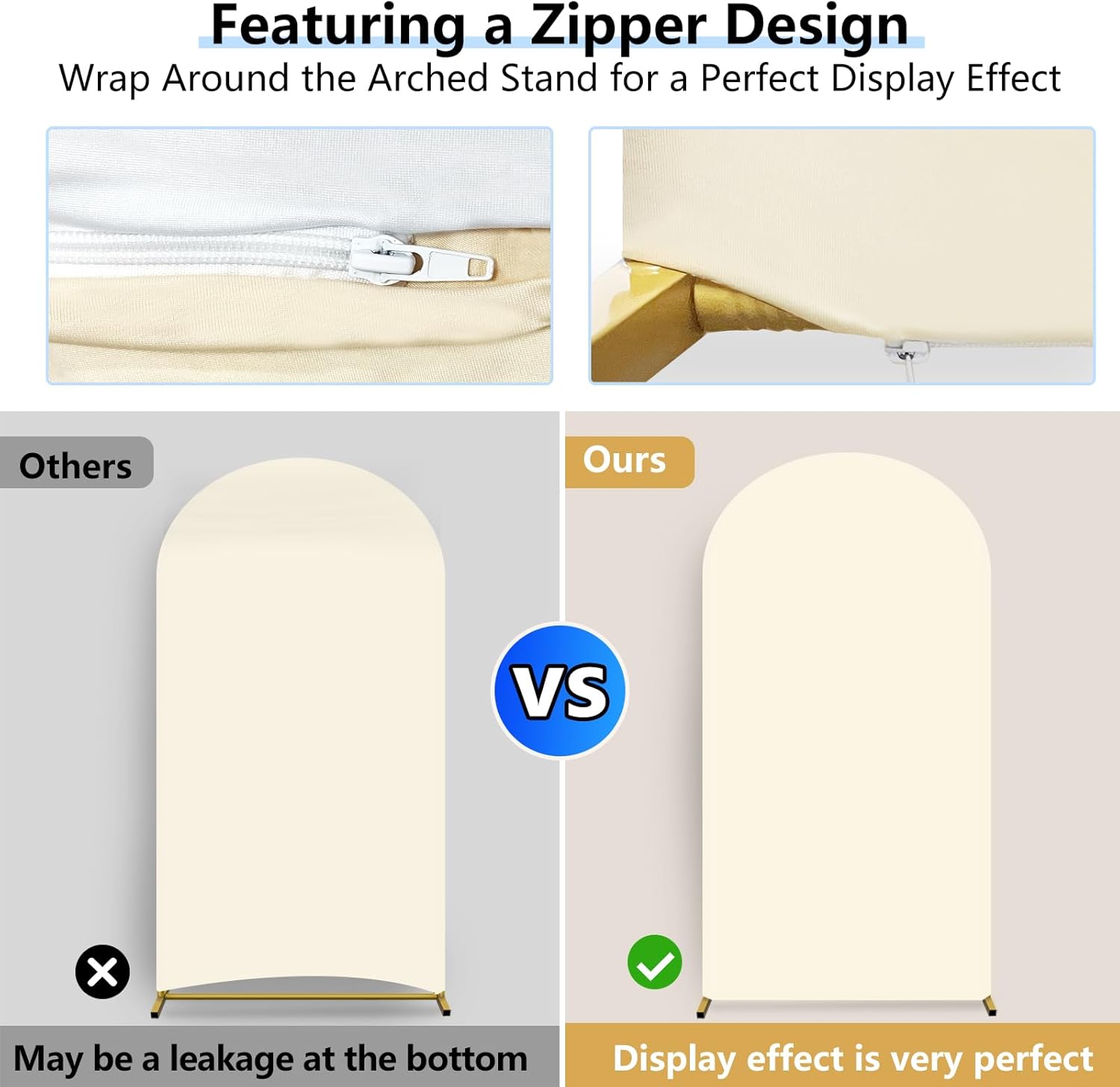 - Thick Spandex Arch Cover: The 7.2 ft and 6 ft white and light beige arch backdrop cover are made of stretchy spandex, not see through, 2-sided and zipper design for seamless decoration, perfectly display your party decoration on either side