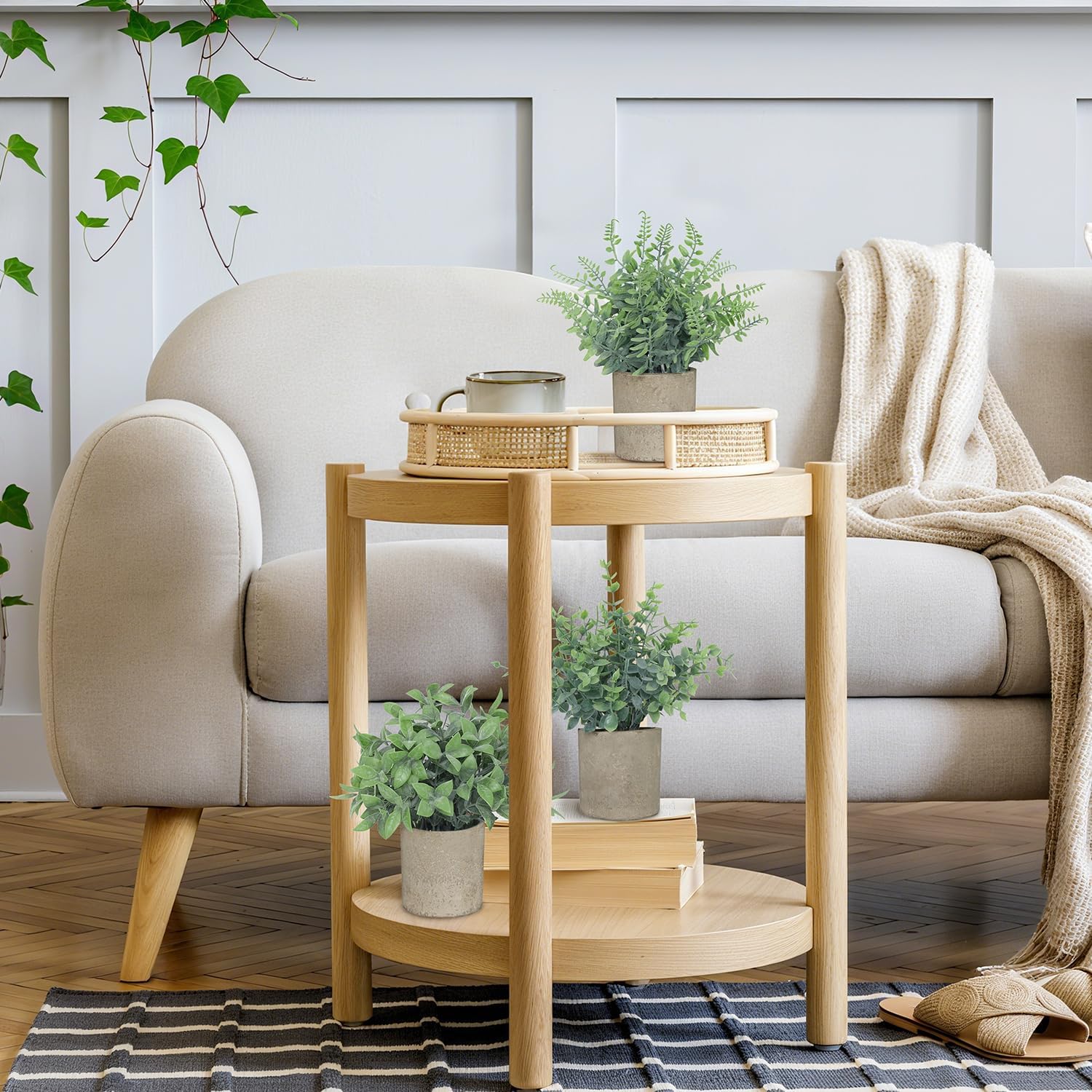 - Durable Material with Natural Style: Made of premium plastic, these small fake plants won’t wither or fade. Each piece is potted in a stylish gray paper pulp pot with a matte texture that brings a rustic farmhouse charm. Please Note: the pulp pots are not waterproof — avoid placing them in or near water
