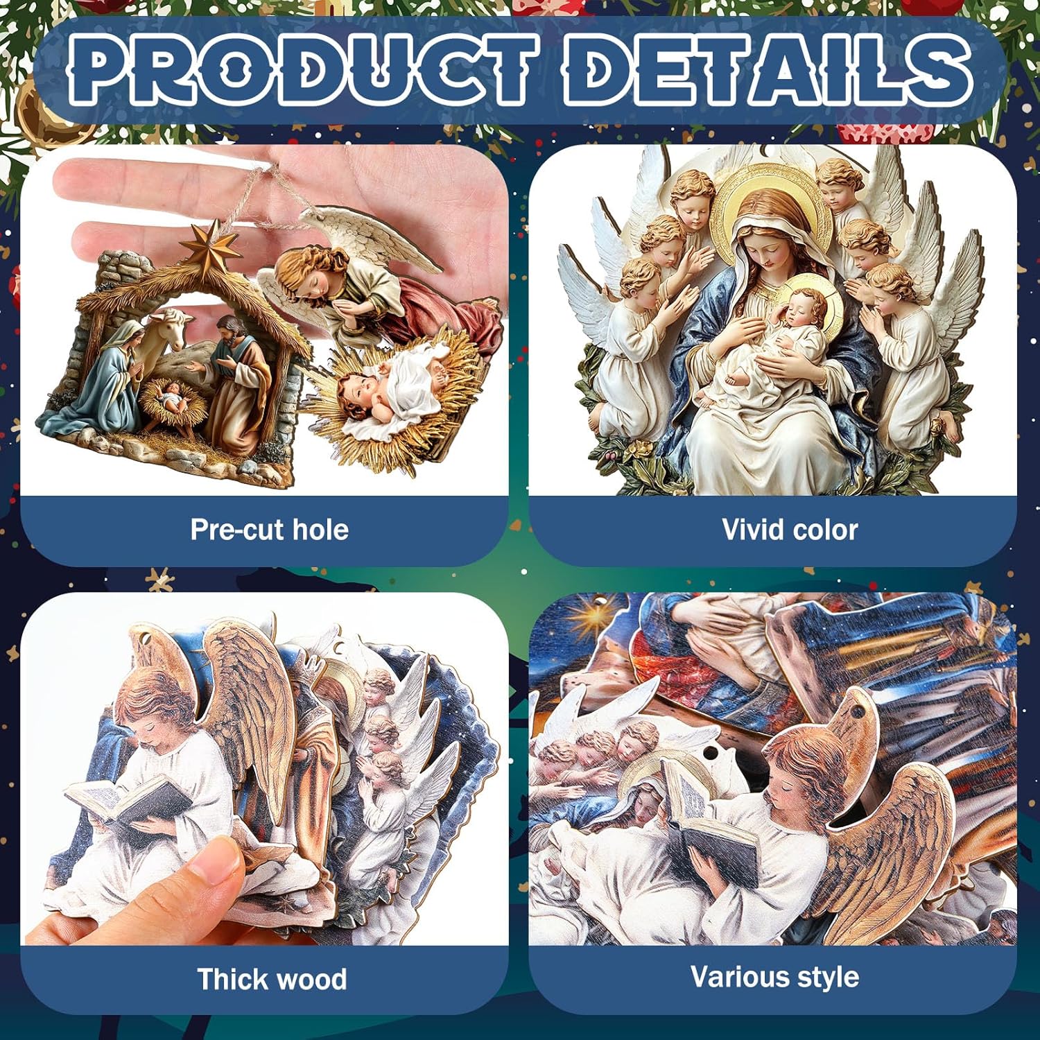 - Warm and Festive Design: our wooden Christmas nativity hanging decorations deeply depict the theme of the birth of Jesus, incorporating a classic retro style The exquisite craftsmanship of angels, the majesty of kings, and the mysterious image of the birth of Jesus take you into the profound stories of history, adding a retro charm to your Christmas and symbolizing blessings and peace