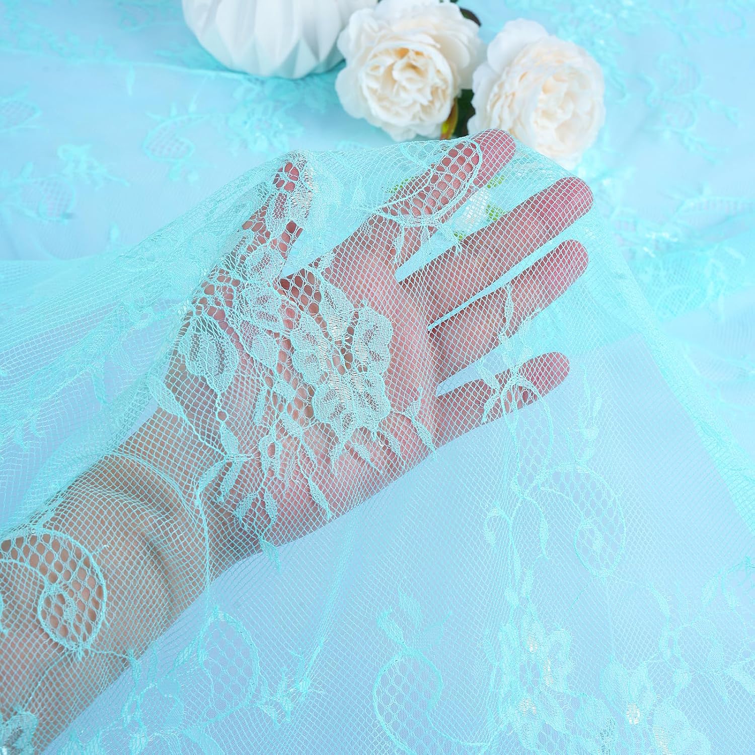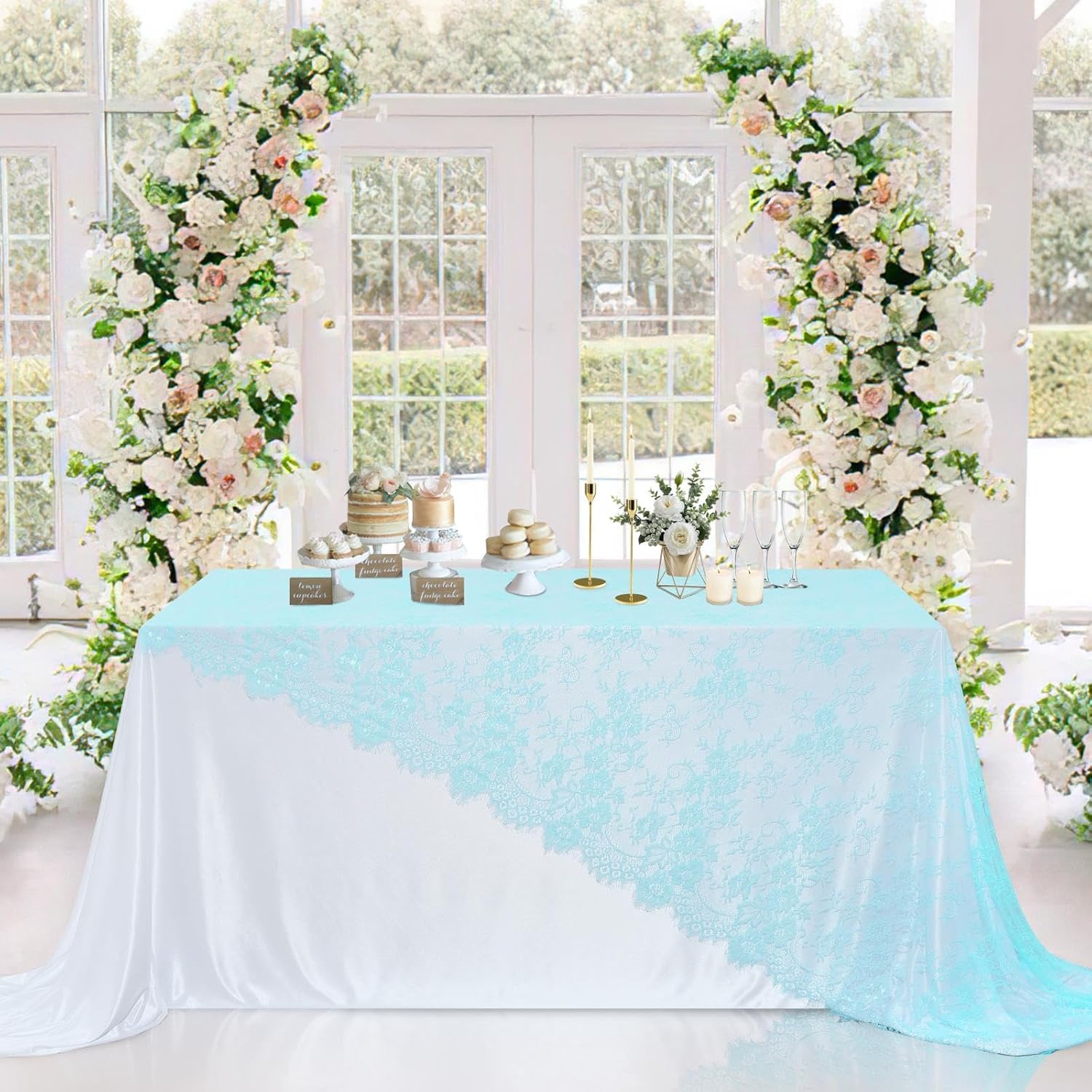 LuoluoHouse Blue Lace Tablecloth 6pcs Table Fabric 60x120 Inch for Rustic Boho Wedding Bridal Shower Party Decoration Rectangle Overlay Long Vintage Embroidered Reception Table Cloth Decor