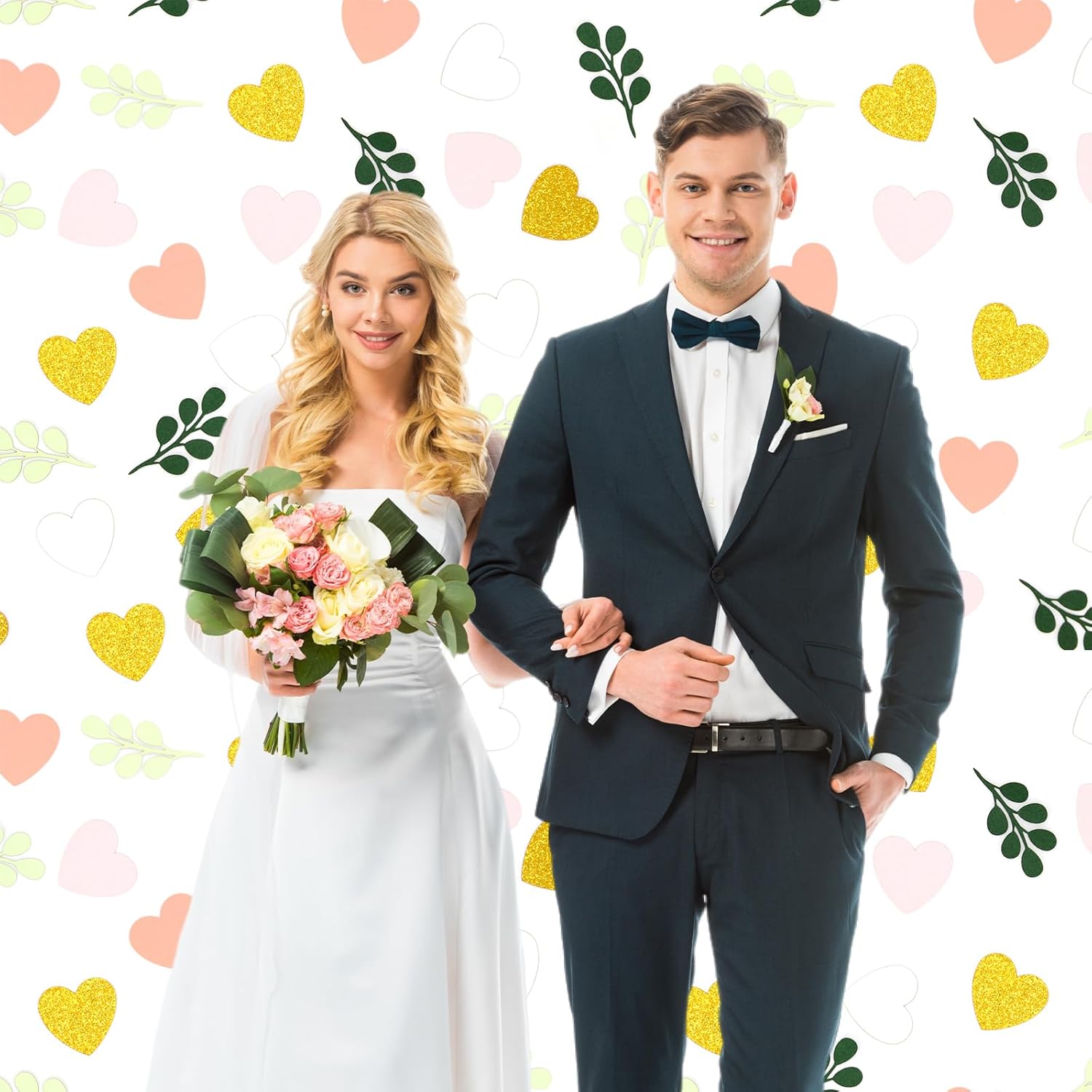 - 1.Elegant Color Matching-Great bridal shower bachelorette wedding party decorations.The heart shaped bachelorette confetti package matched the pink gold white heart and sage green eucalyptus leaf, which make the whole party vigorous and energetic.