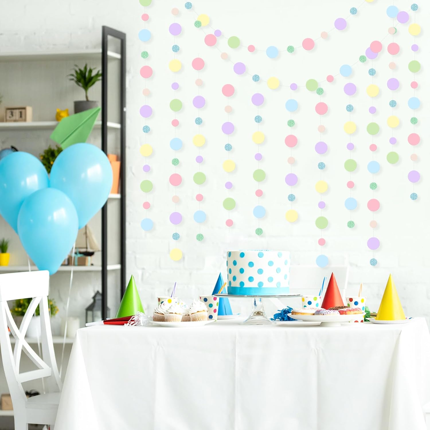 Outus 10 Pieces Colorful Dots Paper Garland Round Glitter Garland Hanging Confetti Streamers Backdrop for Candy Birthday Classroom Halloween Trunk or Treat Car Decoration (Pastel)