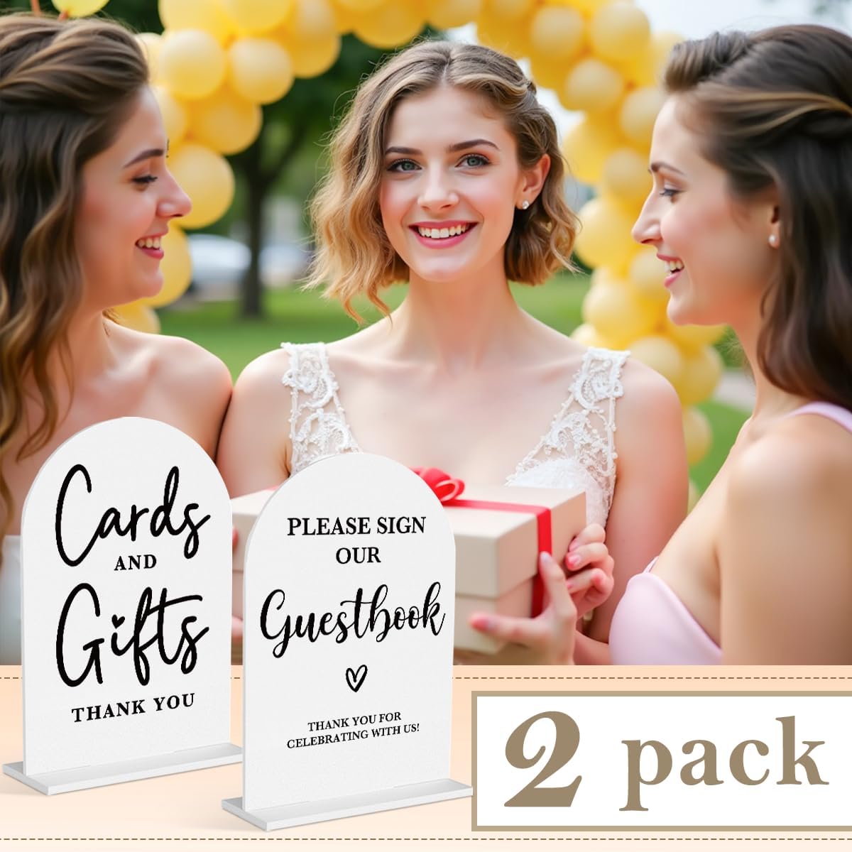 2 Pcs Acrylic Wedding Signs for Ceremony and Reception, Bridal Shower Decorations, Cards and Gifts Signs, Guest Book Sign, Arch Acrylic Table Top Sign with Holder for Wedding Reception (White)
