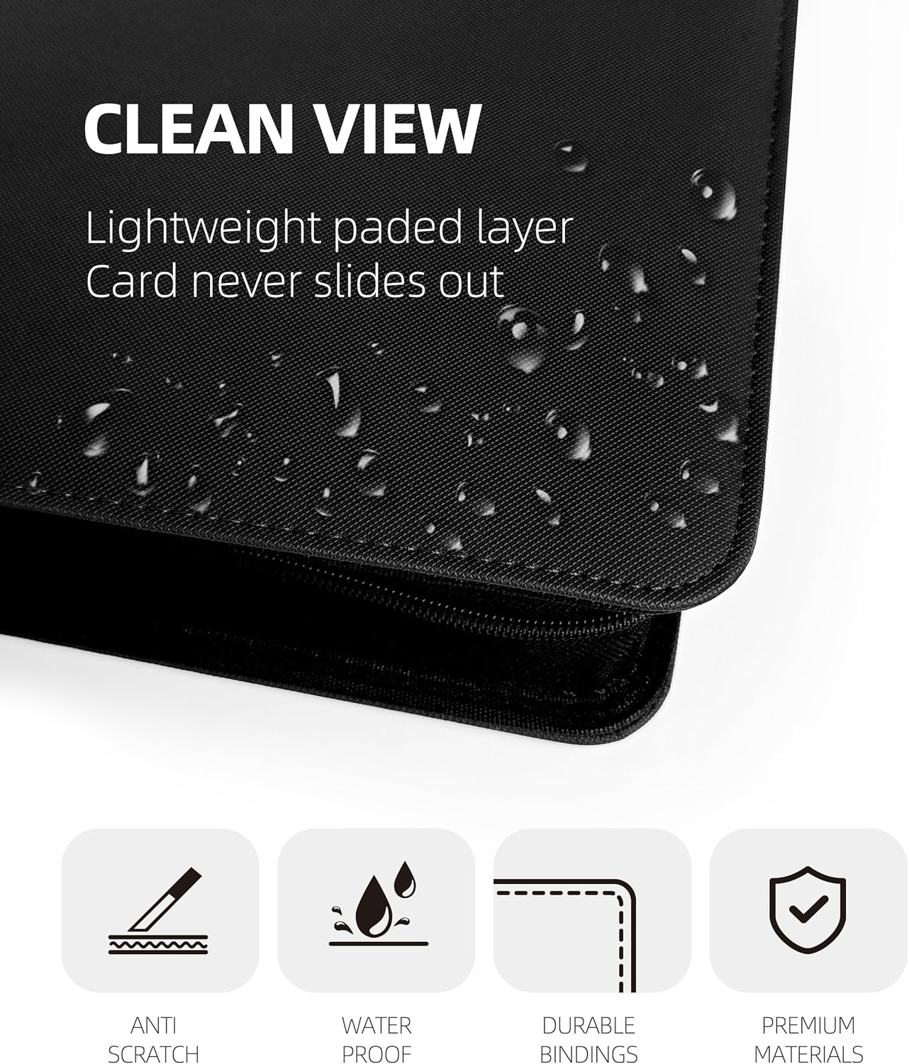 - ✨✨Premium quality trading card binder,made of durable PU leather outer shell and inner pocktes use suppler clear PVC,it will protects your cards out from damage,dust,and moisture.