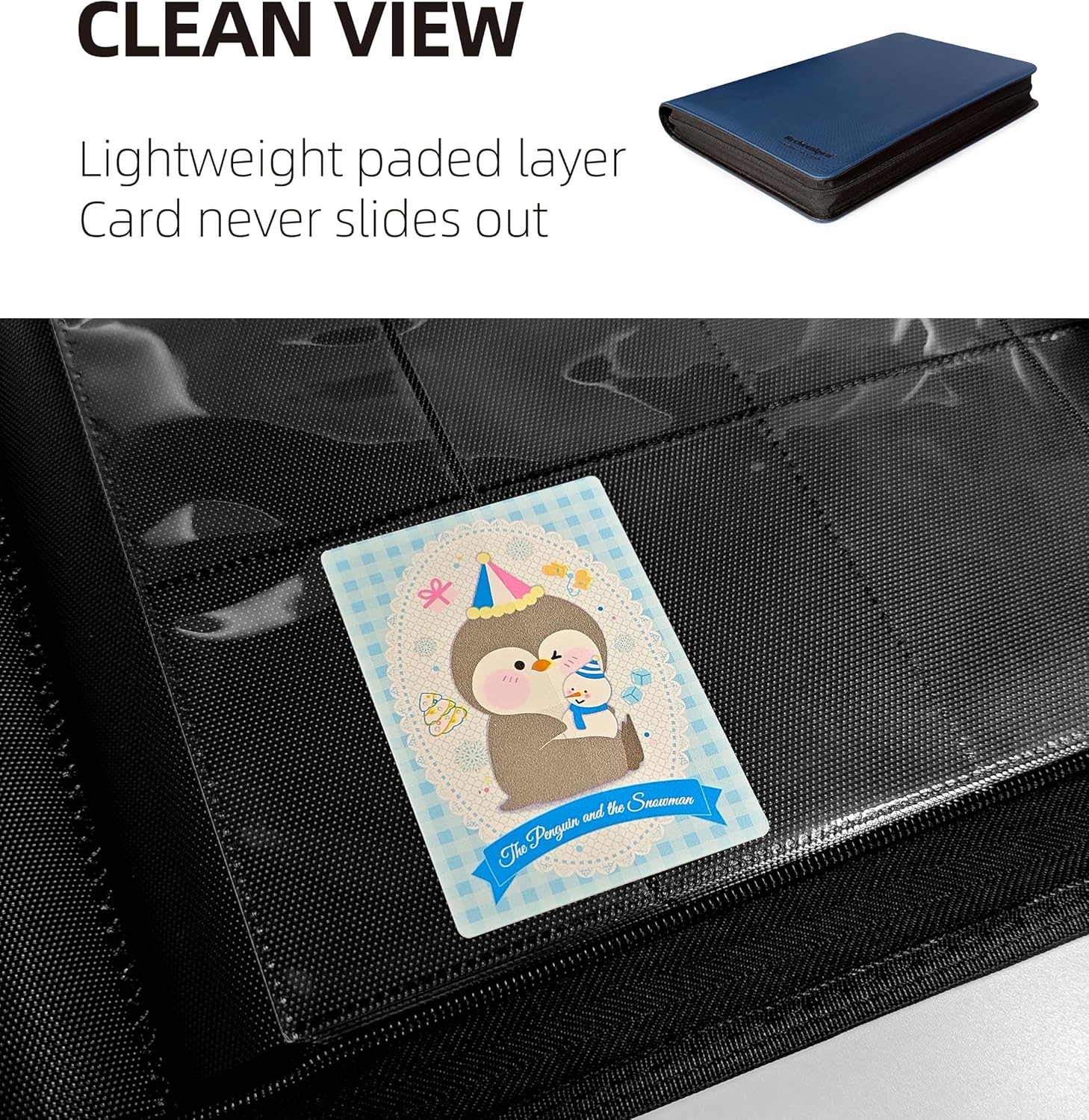 - ✨✨Premium quality trading card binder,made of durable PU leather outer shell and inner pocktes use suppler clear PVC,it will protects your cards out from damage,dust,and moisture.