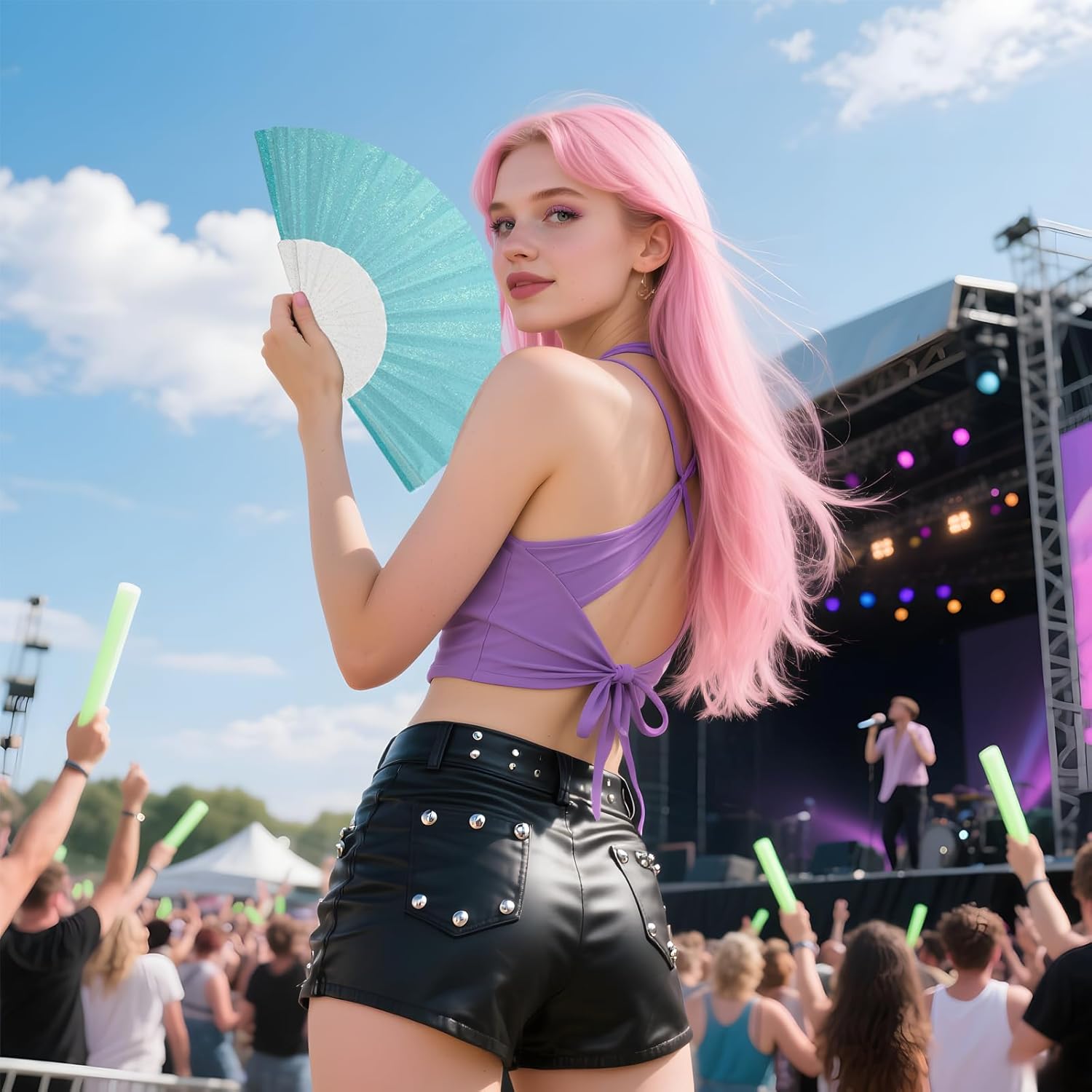 - Glitter Flashpoints Fabric & Polyester Fan Rib: Made from premium glitter flashpoints fabric and polyester fan ribs, this handheld fan features a holographic white design that makes it more attractive and elegant. It stands out as an ideal accessory for weddings, themed parties, festivals, and more.