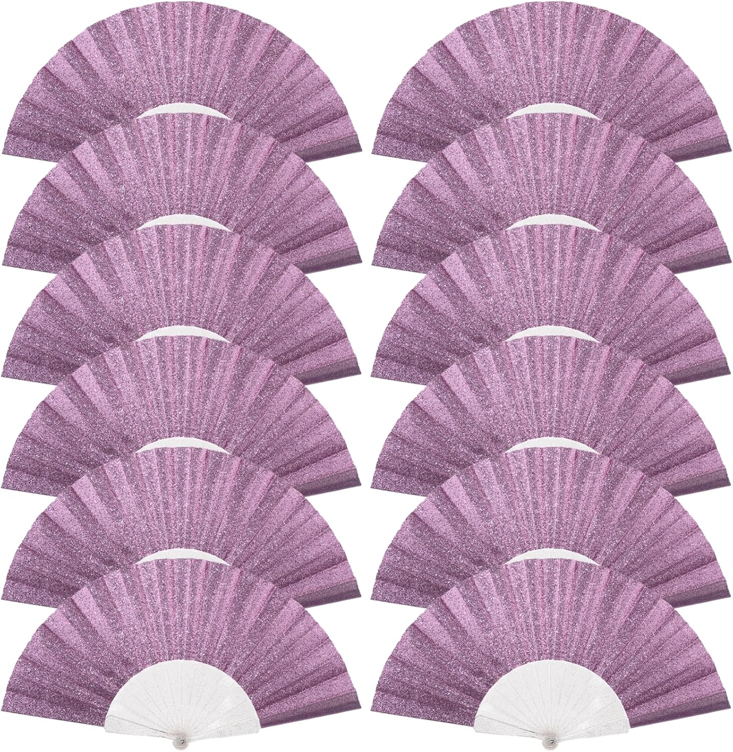 12 Pack Handheld Fan,Folding Hand Glitter Fan with Shining Transparent Fan Rib – Ideal for Wedding, Church, Festival, Dance, Tea Party, Club, and EDM Accessories, Purple