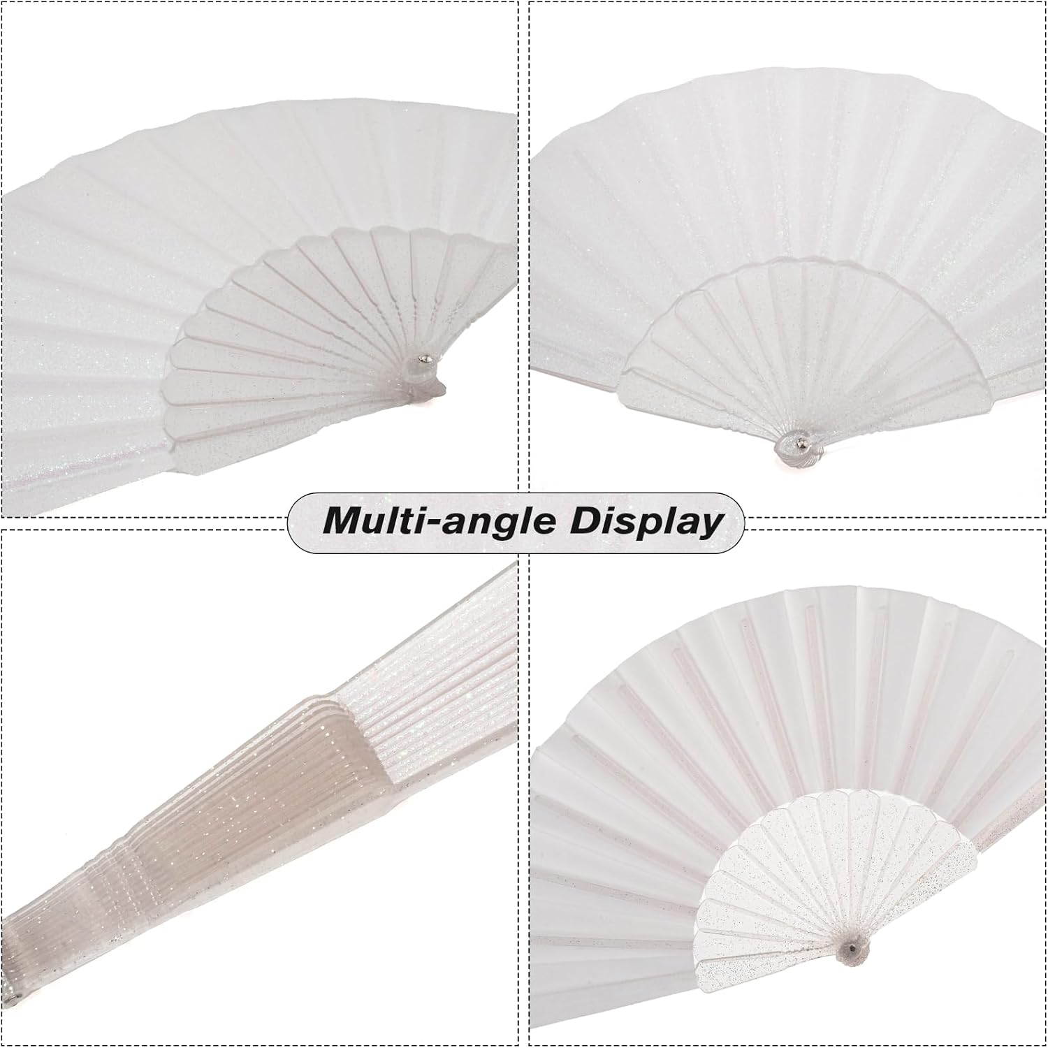 24 Pack Handheld Fan,Folding Hand Glitter fan with Shining Transparent Fan Rib – Ideal for Wedding, Church, Festival, Dance, Tea Party, Club, and EDM Accessories, White