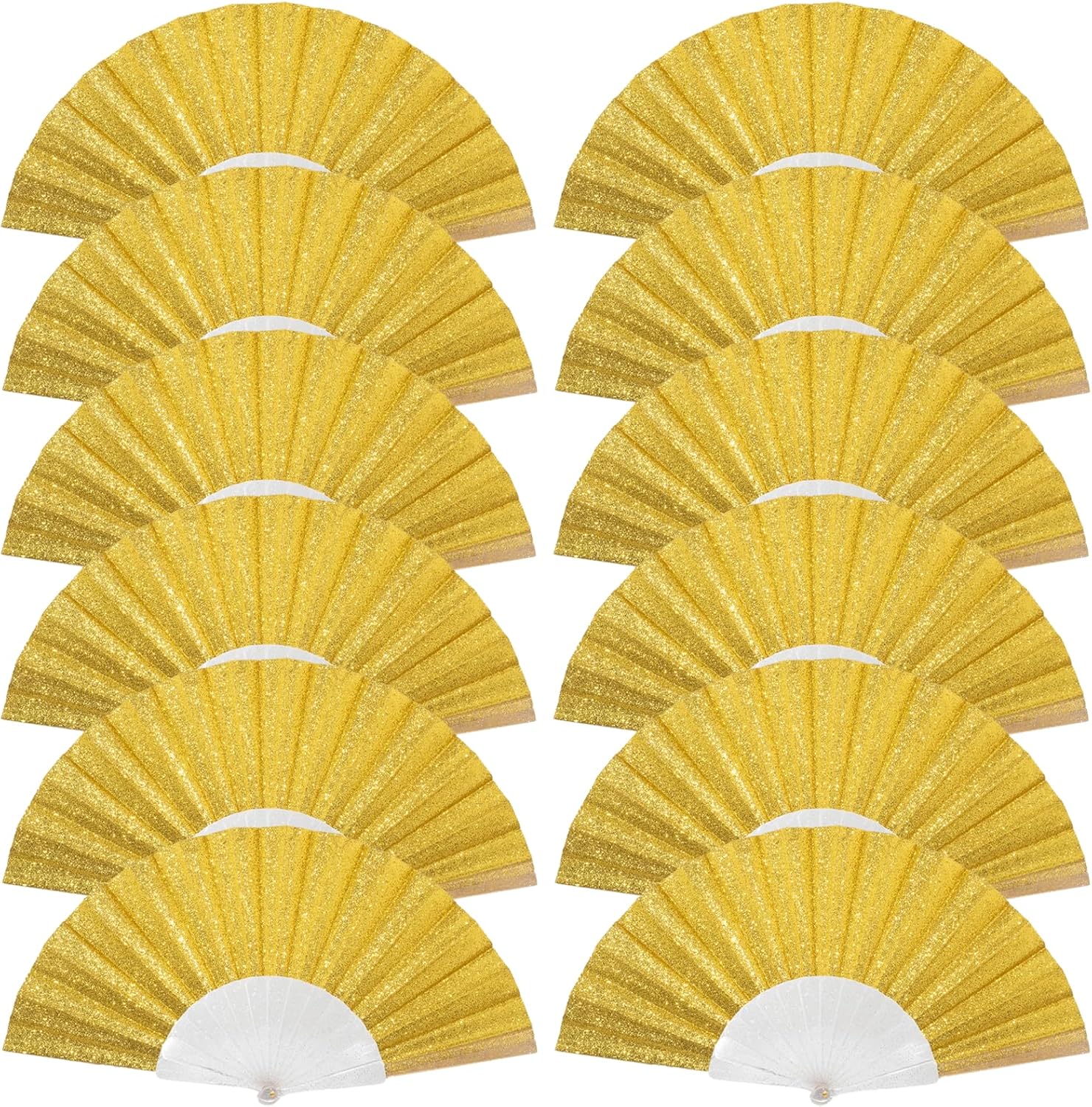 12 Pack Handheld Fan,Folding Hand Glitter Fan with Shining Transparent Fan Rib – Ideal for Wedding, Church, Festival, Dance, Tea Party, Club, and EDM Accessories, Yellow