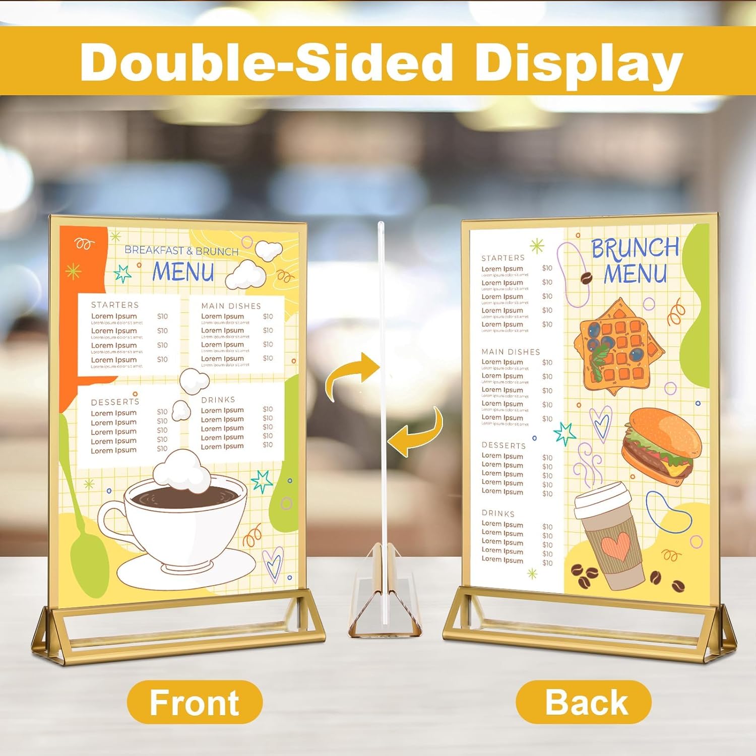 EHWINE 6 Pack Acrylic Sign Holder 5.5 x 8.5, Double Sided Gold Picture Frame Stand up Table Top Sign Holders, Clear Display Stand Menu Flyer Holder for Wedding Party