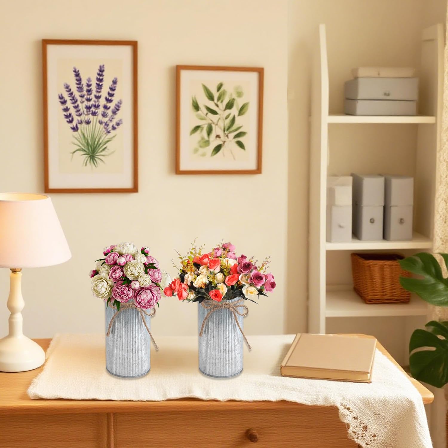 - Elegant & Vintage Style: Crafted from galvanized iron with rustic twine bow accents, this farmhouse vase exudes timeless charm. The flower vase is perfect for enhancing rustic wedding decor and adding farmhouse character to any space