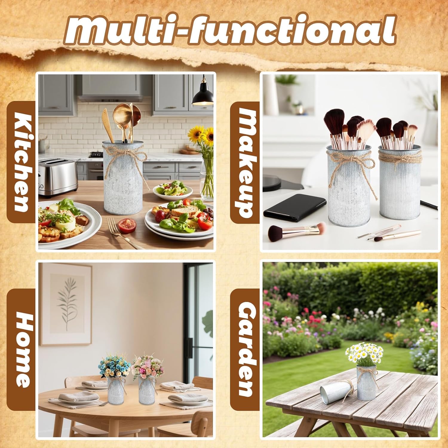 - Widely Use: Beyond floral use,the galvanized metal flower vase can be used as storage organizer for pens in offices, display artificial blooms at home, or store utensils. Its versatile design makes it a cherished gift for house warming / Birthday / Thanksgiving and so on