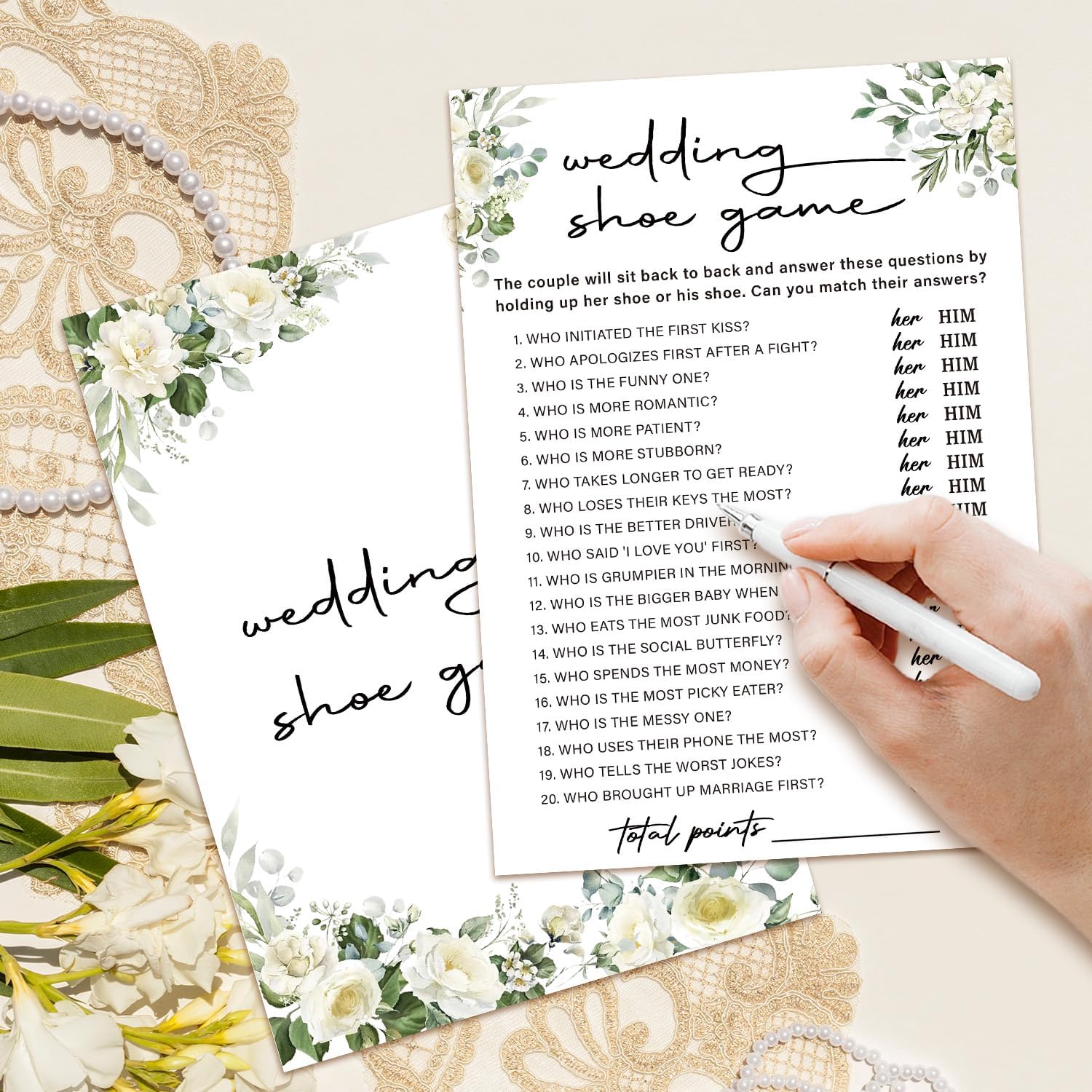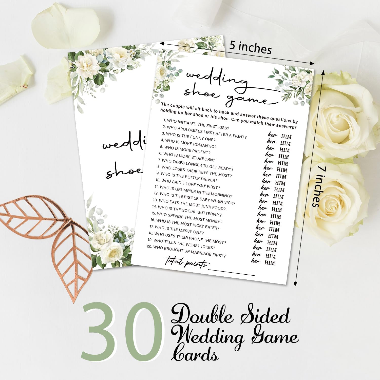 Eucalyptus Bridal Shower Games 30 Guests, Wedding Shoe Bridal Games for Showers, White Rose Wedding Engagement Party Activity Party Supplies/Green-07