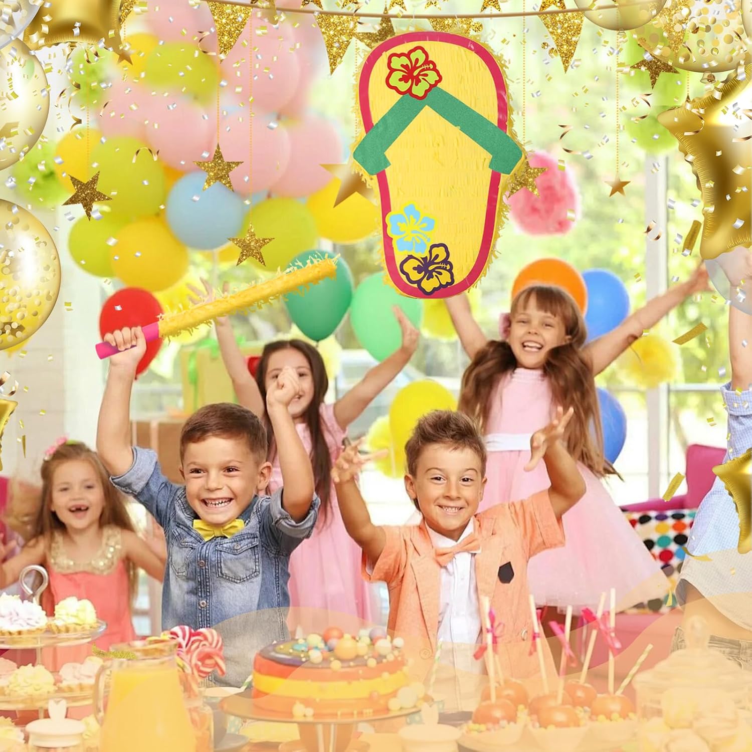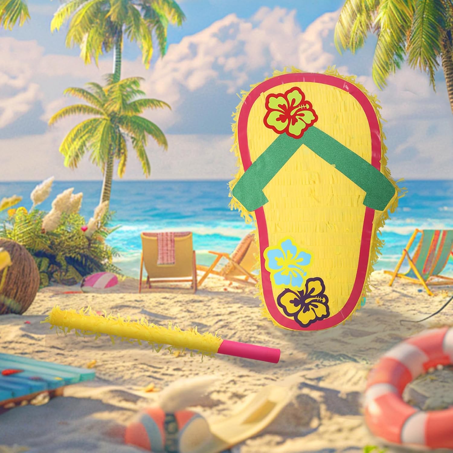 Sandal Pinatas Bundle with a Blindfold and a Bat(17 x 12 x 4 Inches), Perfect for kid's Birthday Parties, Summer Theme Parties and Decorations