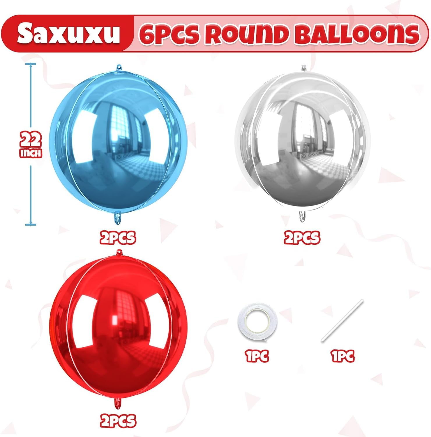 - Package Contains – 6 pcs 22-inch 4th of July foil balloons (light blue *2, red*2, silver*2), 1 pc straw and 1 pc ribbon. These large, eye-catching balloons are perfect for elevating your party decor with a bold and stylish touch.