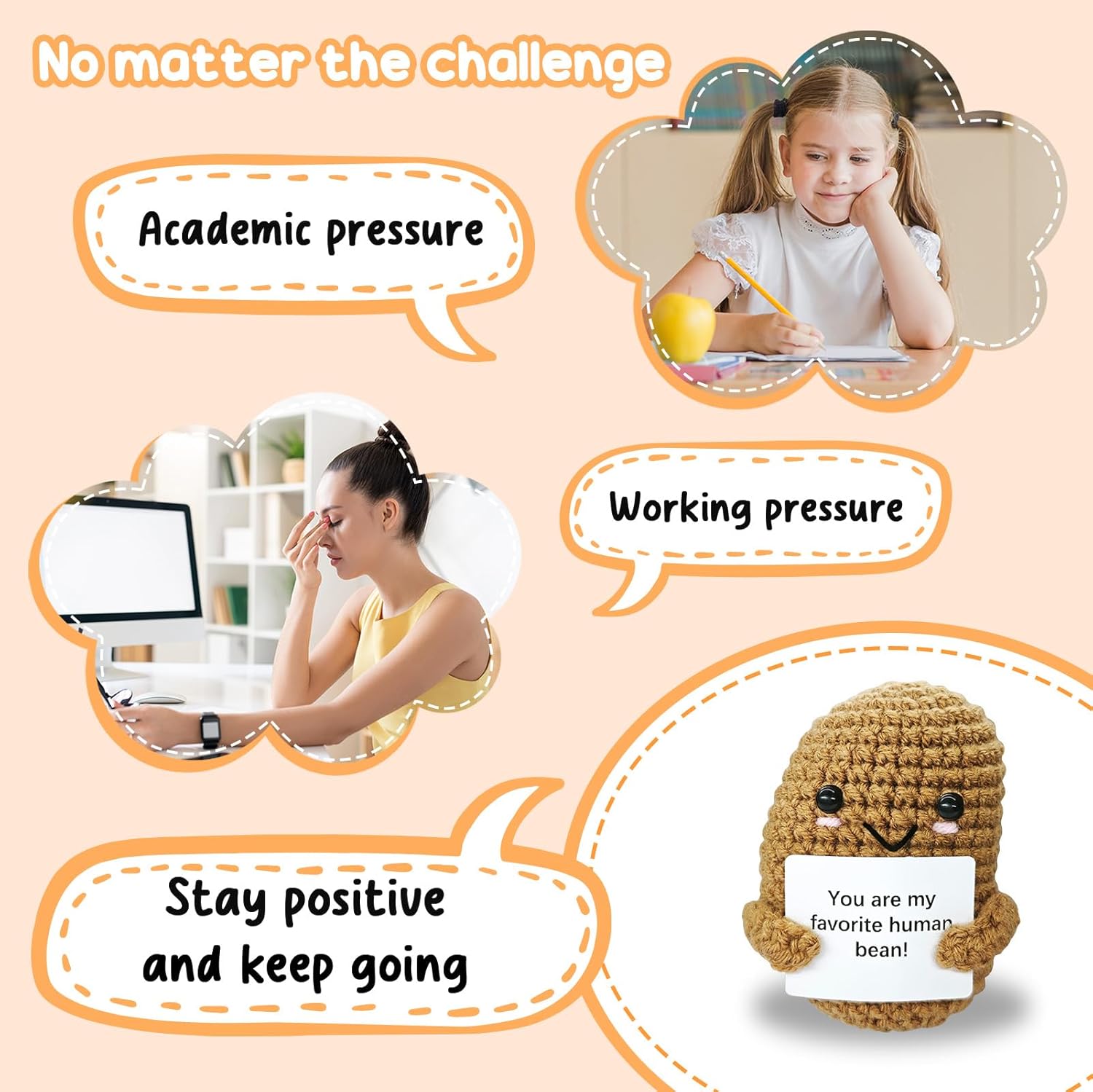 Funny Handmade Coffee Bean Gift-Unique Cute Presents for Women & Men,Emotional Cheer Support,Birthday Gifts for Her/Him,Friends,Coworkers,Family
