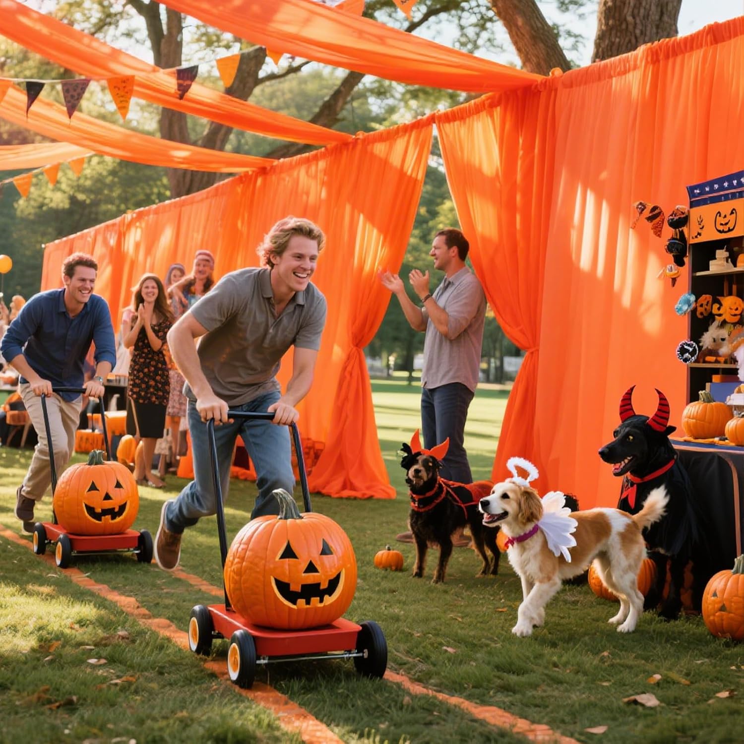 VOK Orange Wedding Arch Draping Fabric Chiffon Fabric, 29in x 18Ft Sheer Chiffon Outdoor Curtain for Wedding Ceremony Birthday Party Decoration (Orange,1 Panel)