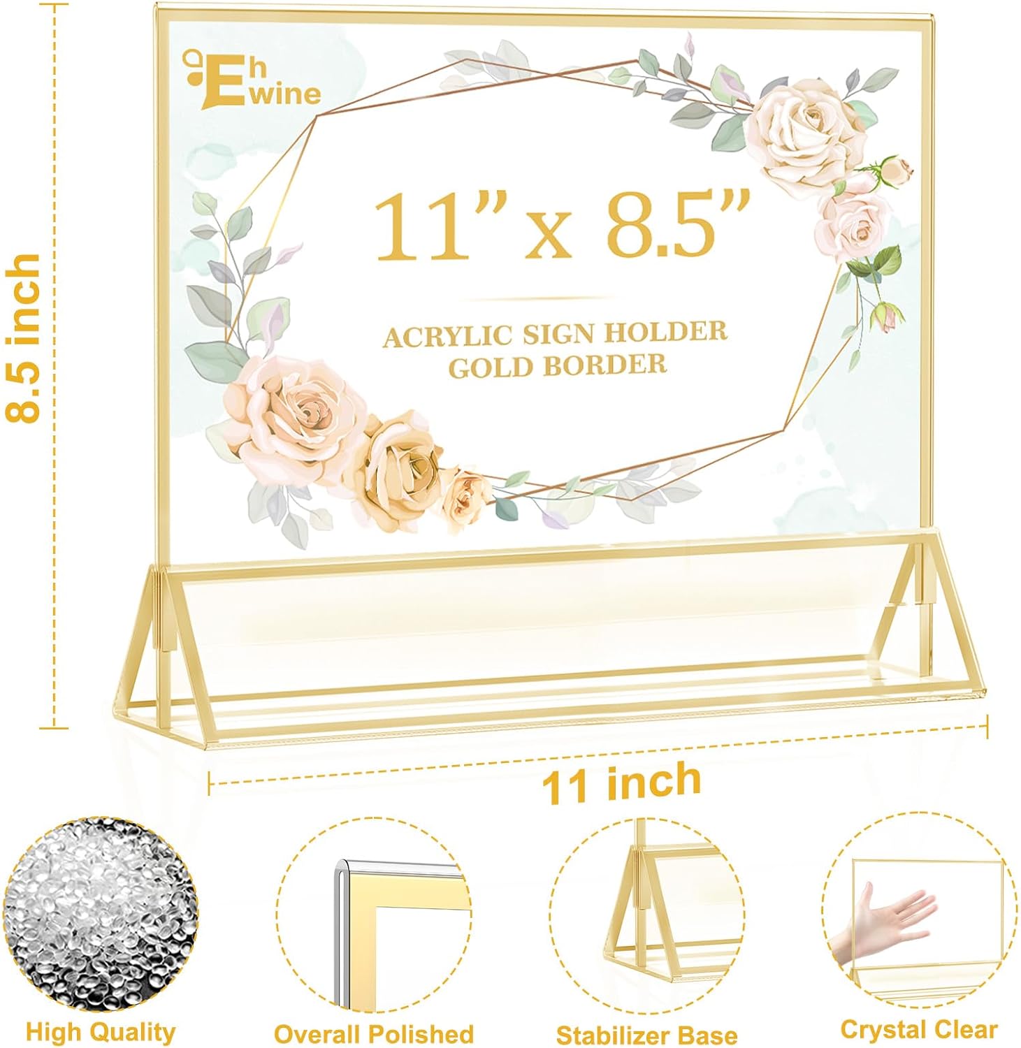 - Clear Golden Border Picture Frame: EHWINE acrylic sign holders are incredibly clear and transparent, providing a professional look to your displays. With no distortion or cloudiness, your message will be conveyed with crystal-clear clarity