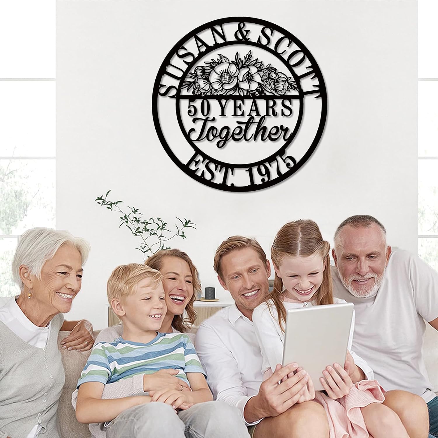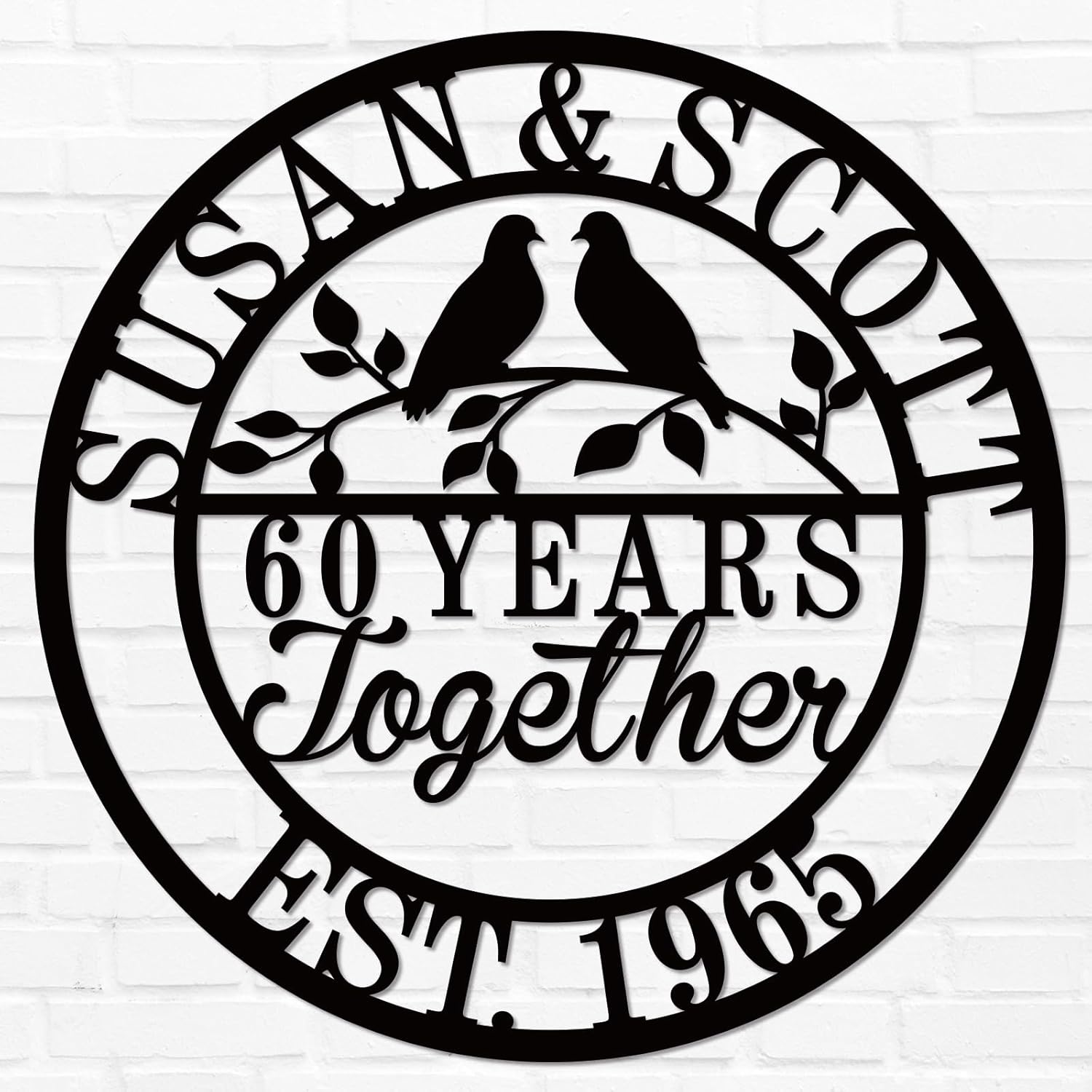 Personalized Wedding Anniversary Sign Gifts, Custom 50th 40th 65th 60th 25th 70th Anniversary Metal Sign, Wedding Gifts for Couples, Custom Name Sign, House Warming Gifts New Home