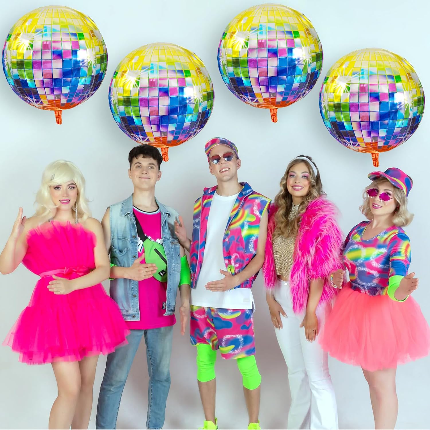 Disco Ball Balloons 4PC,Foil Disco Balloons 22 Inch 4D Round Balloon for 70s 80s 90s Birthday Bachelorette Decorations
