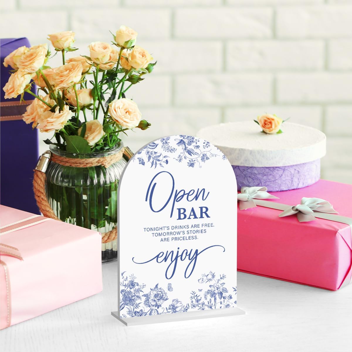 Acrylic Wedding Signs, Dusty Blue Wedding Decor, Blue Weddings Decor, Open Bar Signs for Reception, Modern Calligraphy Arch Acrylic Table Top Sign for Weddings Parties Dinners (White)