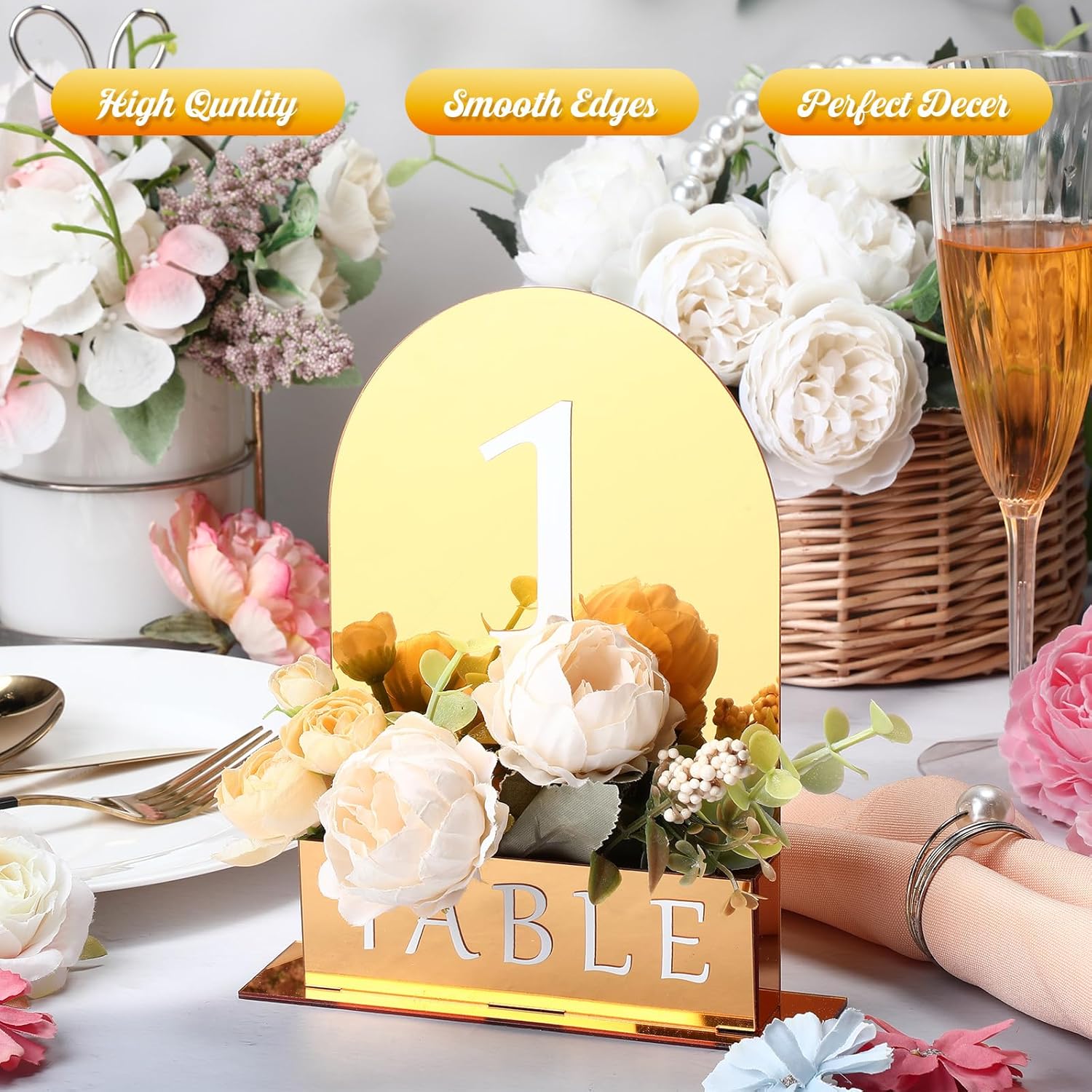 Table Number 1-15 for Wedding Reception Arch Acrylic Wedding Table Number with Flower Trough 5" x 7" Mirrored Rustic Centerpiece for Reception Bridal Shower Party Catering Banquet(Gold)