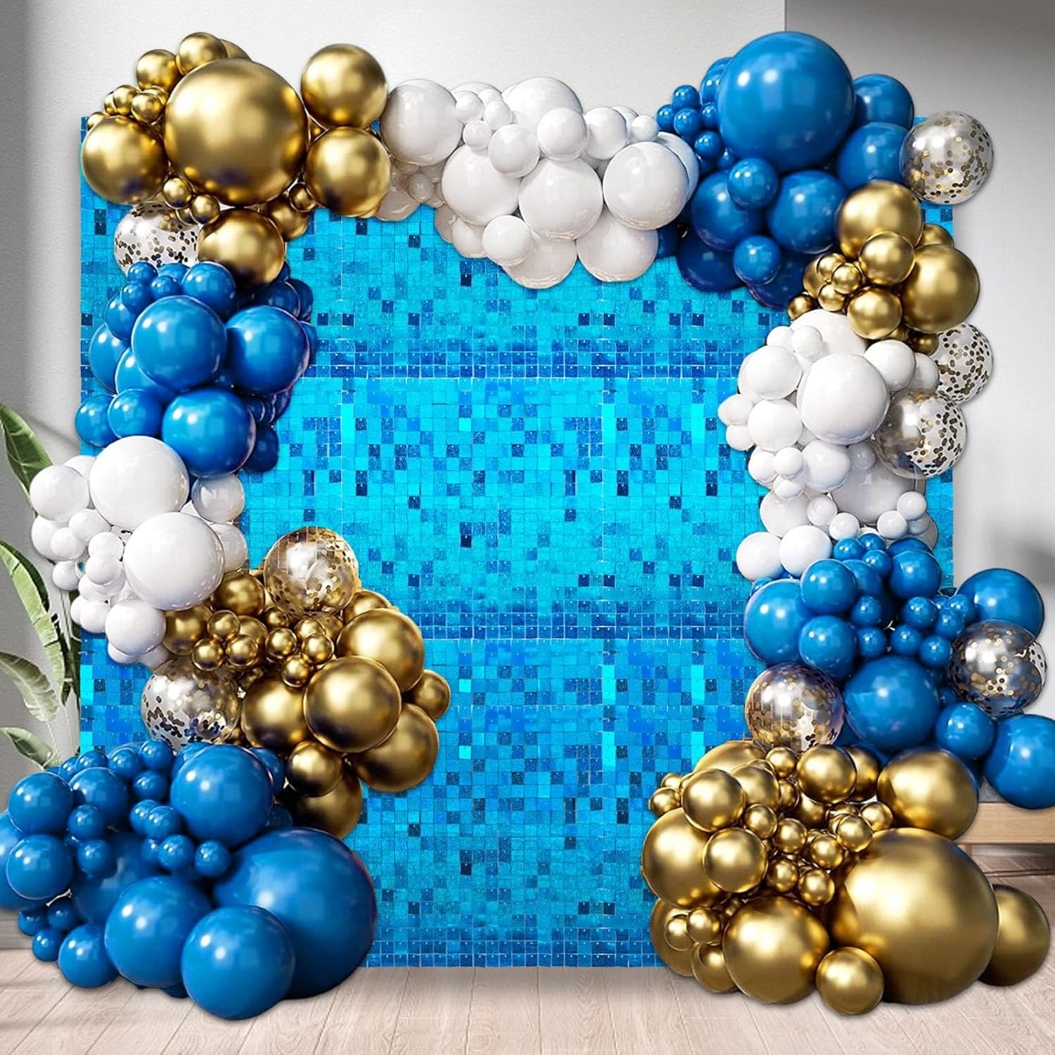12PCS Lake Blue Shimmer Wall Backdrop, Laser Square Sequin Photo Backdrops Panel, Glitter Wall Background for Birthdays, Weddings, Christmas, Engagements, Disco Bachelorette Party Decoration (3FTx4FT)