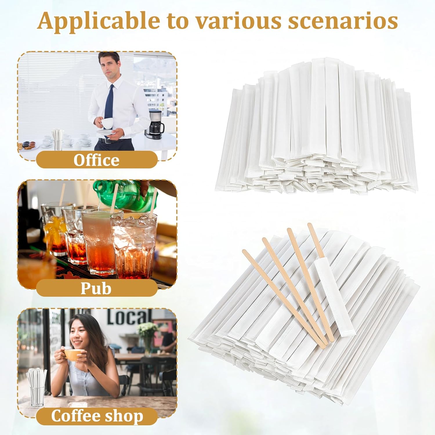 - Hygienic Individual Wrapping: Every wood coffee stir stick comes sealed in clean white paper sleeves, maintaining sanitation in shared environments. The convenient packaging allows for clean dispensing at coffee stations, buffet tables, or for on-the-go use while preventing contamination from dust or handling.