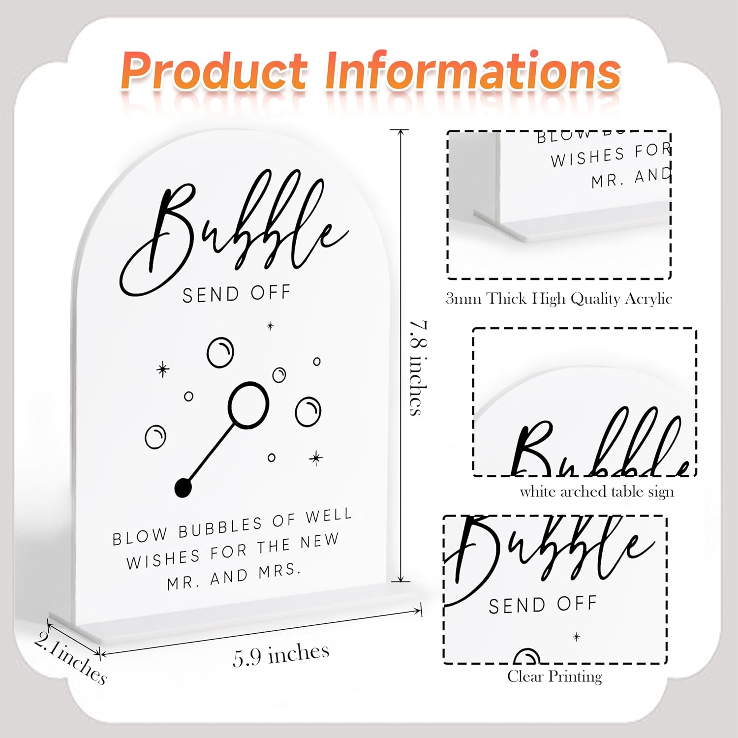 Bubble Send Off Sign for Wedding, White Arch Acrylic Sign, Wedding Reception Decorations, Bridal Shower Decor, Engagement Party Decor, Centerpiece Table Decorations Party for Bride and Groom-20