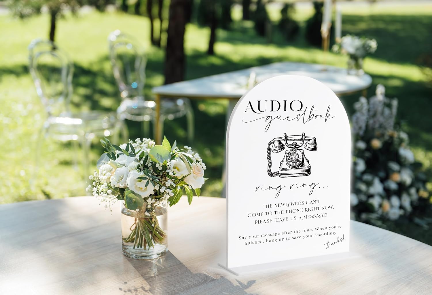 Audio Guest Book Sign, White Arch Acrylic Wedding Sign, Audio Guest Book Wedding Phone, Bridal Shower Decor, Engagement Party Decor, Centerpiece Table Decorations Party for Bride and Groom-25