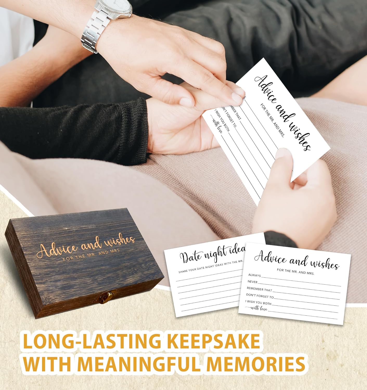 - Complete Wedding Set: Includes 50 advice cards and a keepsake box, perfect for wedding showers, receptions, or as a gift for engaged couples. The storage box protects memories while serving as elegant decor for any wedding event.