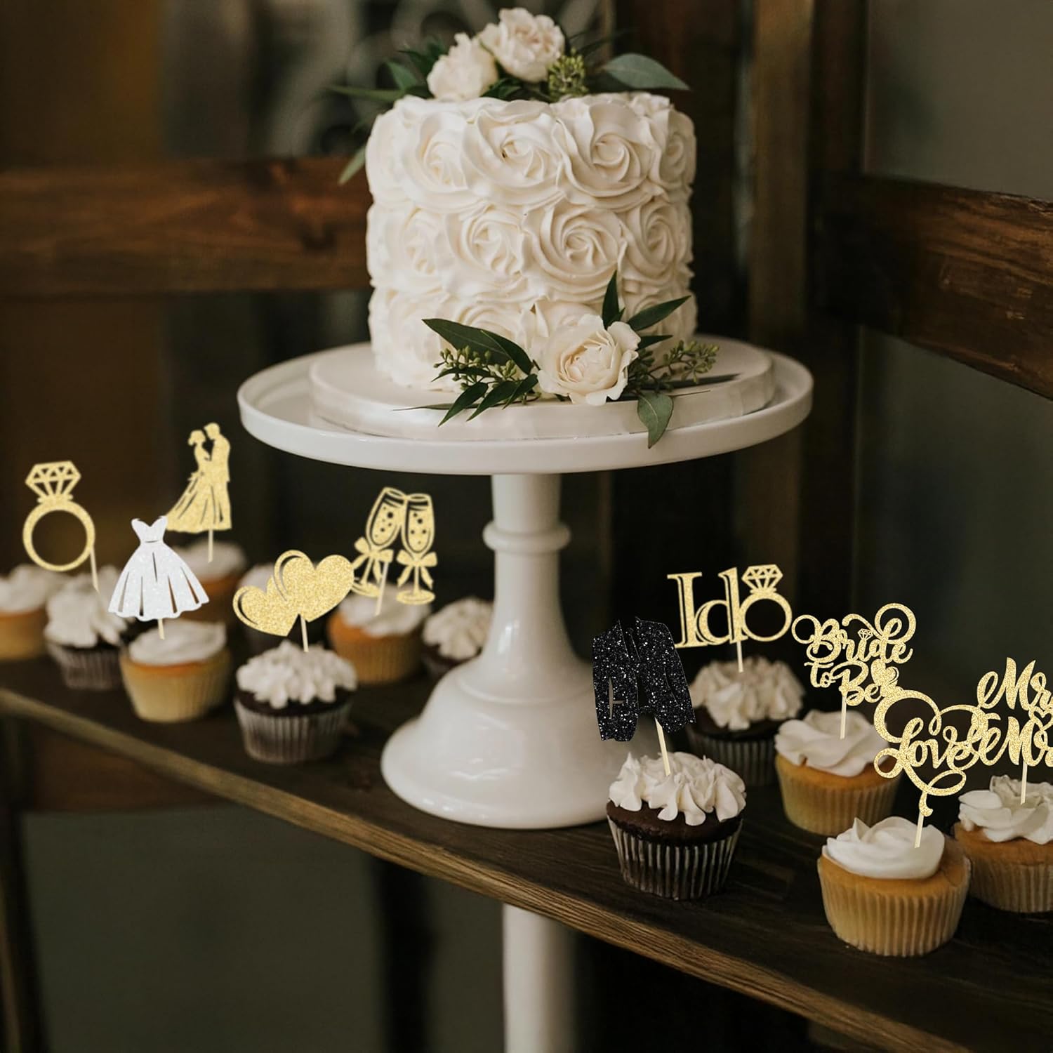 Gyufise 30Pcs Bride to Be Cupcake Toppers Glitter Diamond Ring I Do Love Cupcake Picks Miss to Mrs Bridal Shower Wedding Engagement Bachelorette Cake Decoration Gold