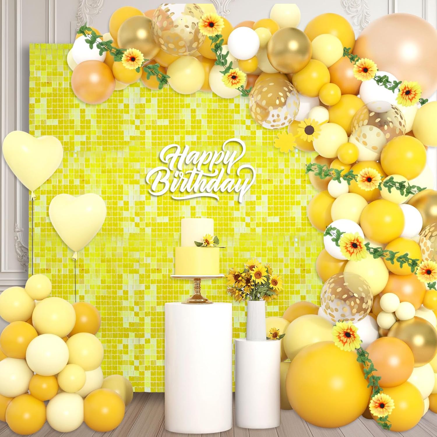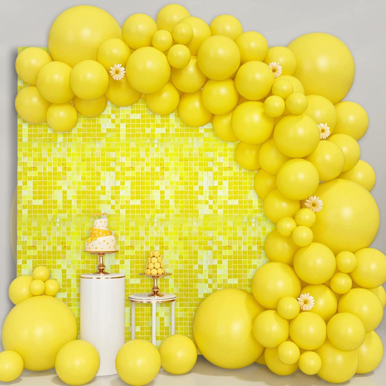 - 【Shimmer Wall Backdrops】The sequins of the colorful yellow glitter wall panels will move with the wind and sparkle when the light hits them. You can match it with any balloon, wall, outdoor or indoor backdrop to a fantastic shiny photo backdrop, creating a nice shiny atmosphere for your party.