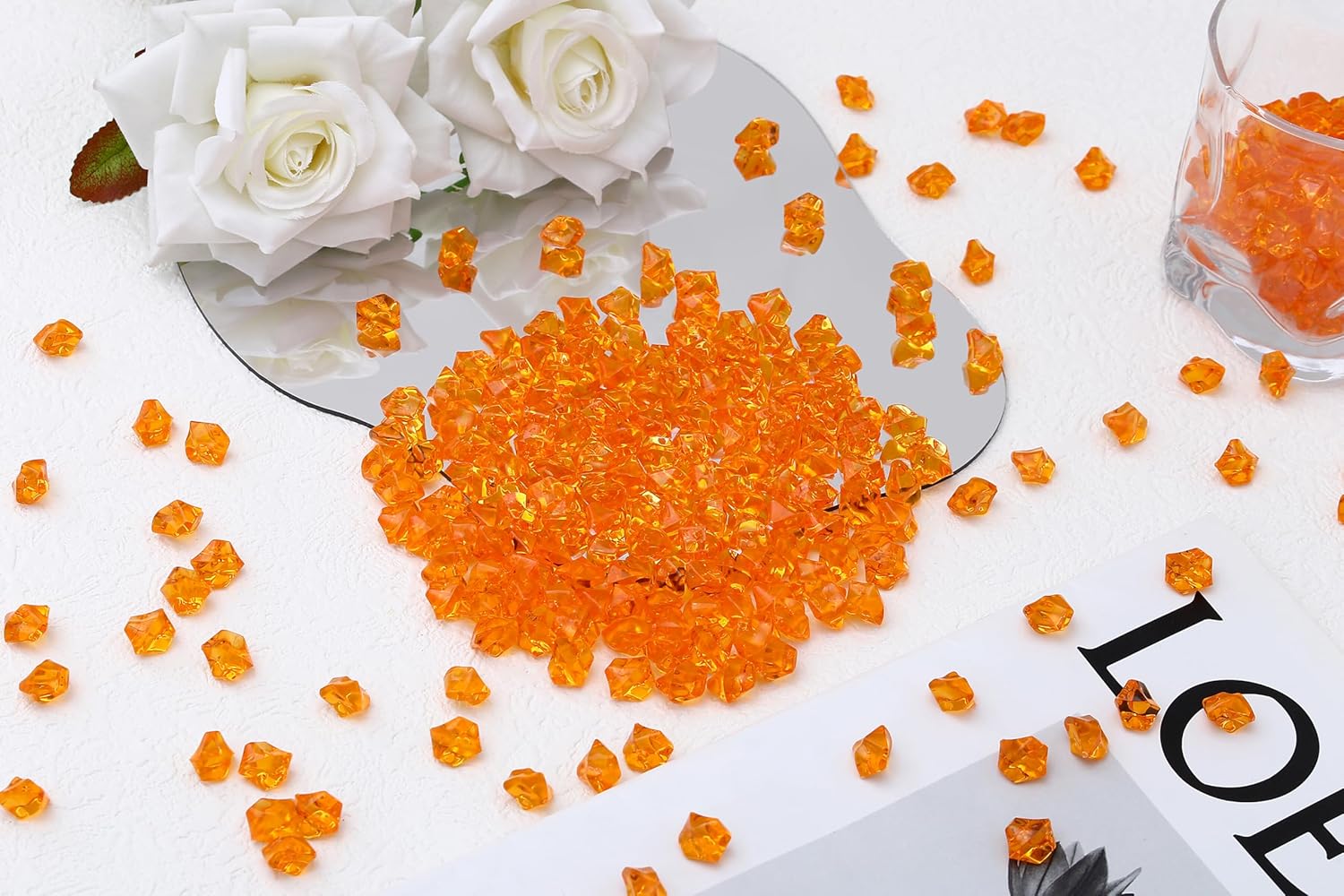 - Important Note:These orange acrylic ice cubes can be reused for countless parties, weddings, and DIY projects. Great for event planners, decorators, or home stylists seeking vibrant gems. Please note: these acrylic diamonds are for decorative use only—not suitable for cooling drinks or edible purposes