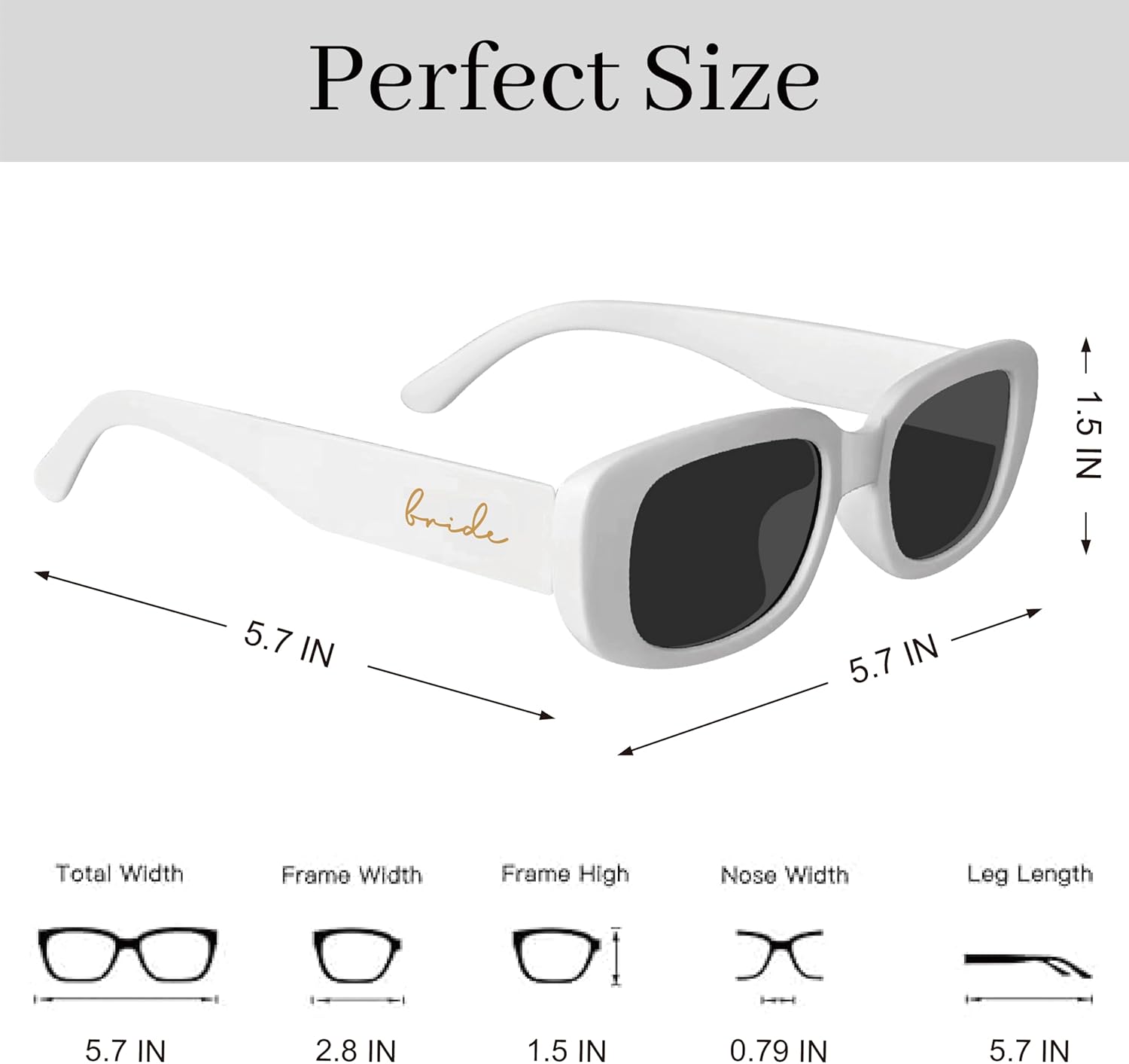 - 【Bridesmaid Sunglasses】 The rectangle frame makes the overall look of the bridesmaid sunglasses more retro. This stylish design allows you look more charming and make it easy for you to match with various outfits at various occasions