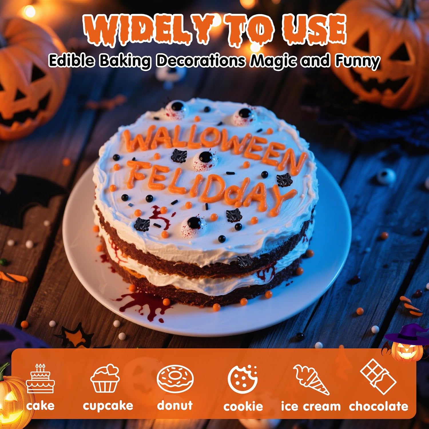 - Versatile Dessert Decoration:1 edible bottle of monster sugar,contains blood eyeballs,black spider monsters,black orange pearls and jimmies sprinkles,perfect for meeting all your baking decoration needs.Ours halloween sprinkles transform ordinary desserts into adorable creations with just a sprinkle,no skill neededThe sugar decorations are edibled candies.After Baking,decorate the cookies or cake with pearl sugar to avoid melting.For best results, use the sugar sprinkles as soon as possible after opening