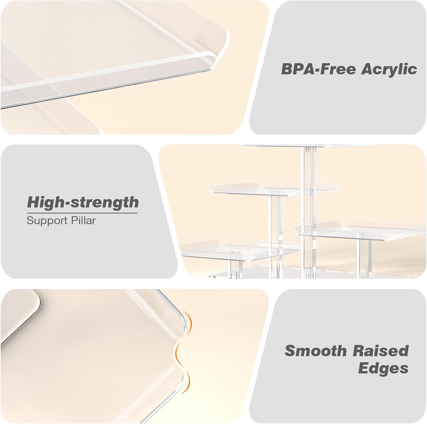 4 Tier Cupcake Stand, Acrylic Dessert Tree Tower Display Holder for Wedding Birthday Party Candy Bar Decor