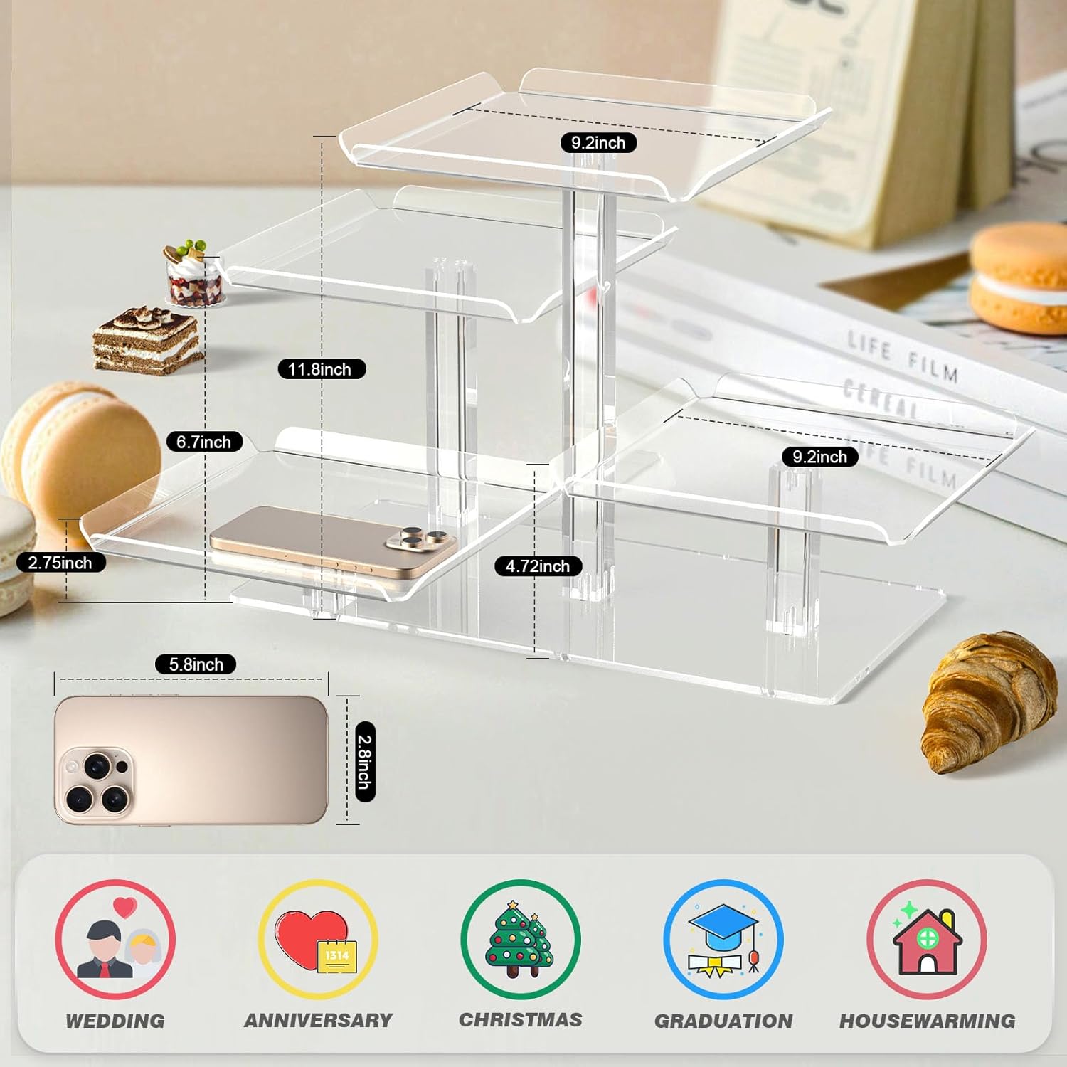 - Unshakable Stability for Your Peace of Mind: We prioritize your peace of mind. The dessert stands constructed from robust 0.12-inch acrylic with reinforced rods, this stand offers a sturdy, wobble-free foundation capable of supporting 12+ lbs. Itโs the reliable choice that protects your culinary creations.