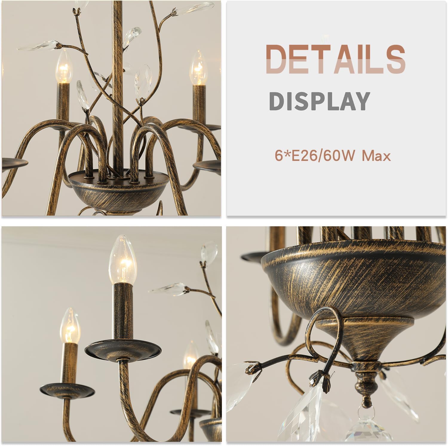 - đWhy Choose Us? ăModern DesignăThis contemporary crystal farmhouse geometric chandelier features striking flower branches paired with crystal accents, finished in a distinctive antique bronze patina that exudes modern aesthetic appeal