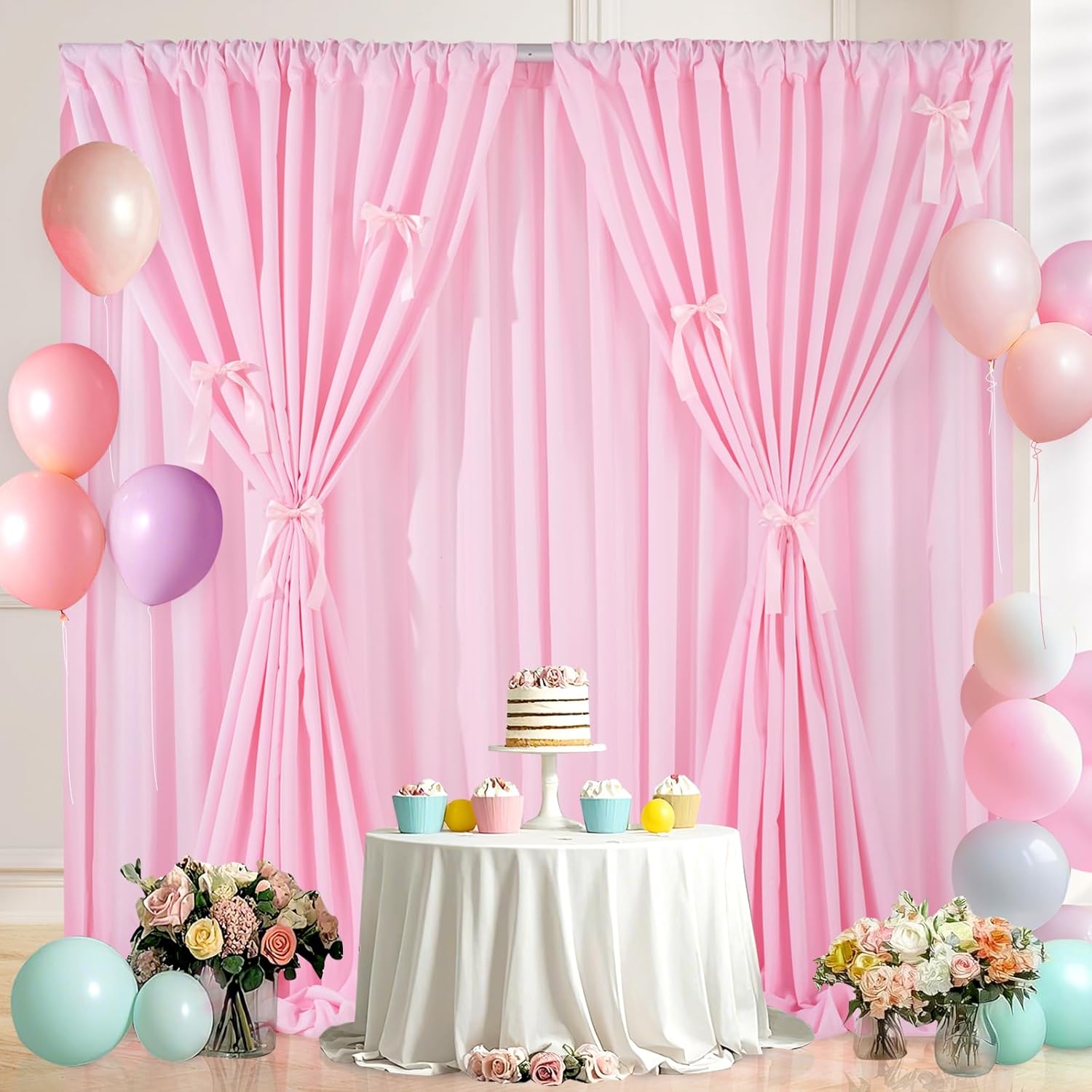 Pink Backdrop Curtain 2Panels : 11.6×8ft Wedding Backdrop Wrinkle Free Polyester Background - Bridal Shower Outdoor Decorations