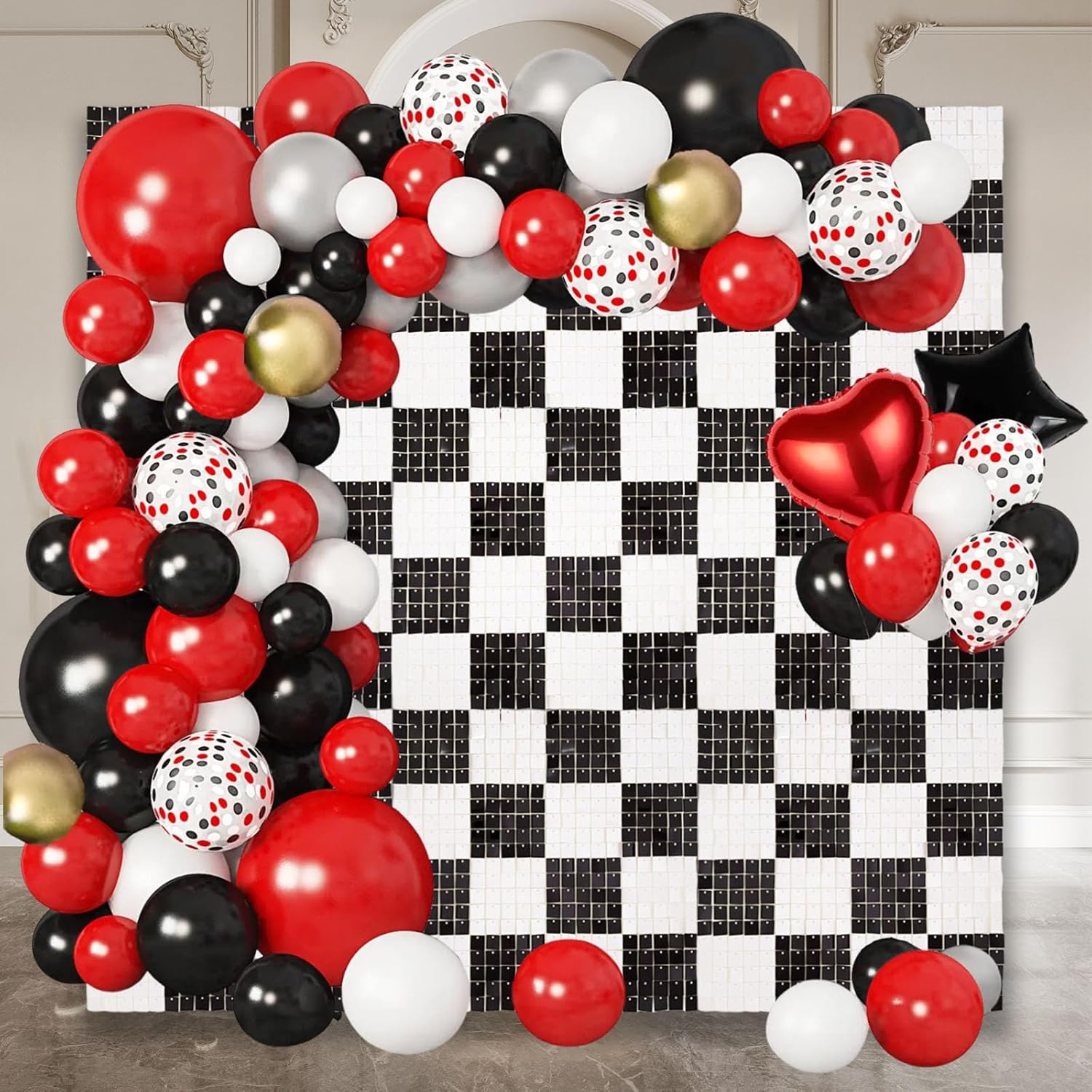 - 【Reusable and Durable】Black White glitter wall background sequins panels is made from sturdy polymer plastic that won’t fade over time and is easily cleaned with a damp cloth or tissue, which can be used multiple times for other occasions for outdoor and indoor.