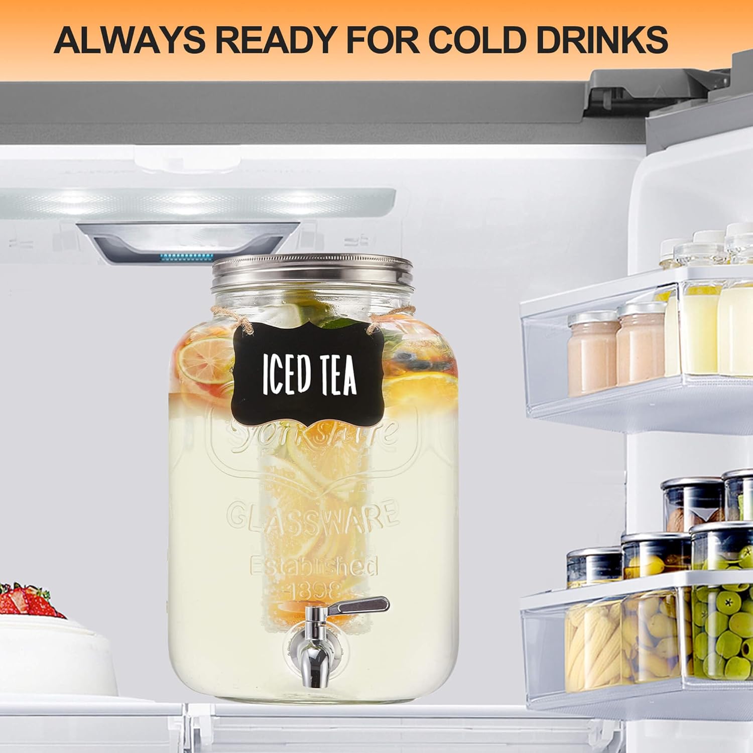2 Gallon Glass Drink Dispenser for Parties, Beverage Dispenser, Lemonade Dispenser with 18/8 Stainless Steel Spigot, Leakproof for Sun Tea, Juice, Picnic, BBQ & Bars