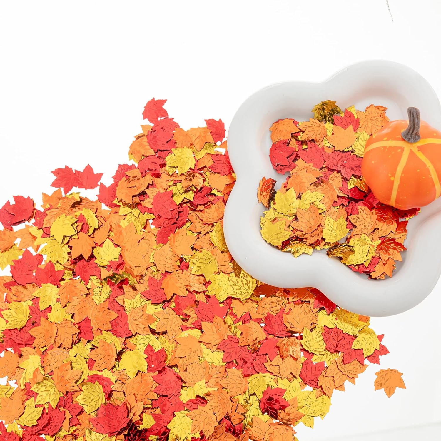 - Maple Leaf Design: features fall maple leaf shaped design in 3 colors. Very exquisite and beautiful, looks shiny and glitter. The autumn confetti is ideal addition for Party, fall Table Confetti, Glitter Confetti Engagement Supplies and more