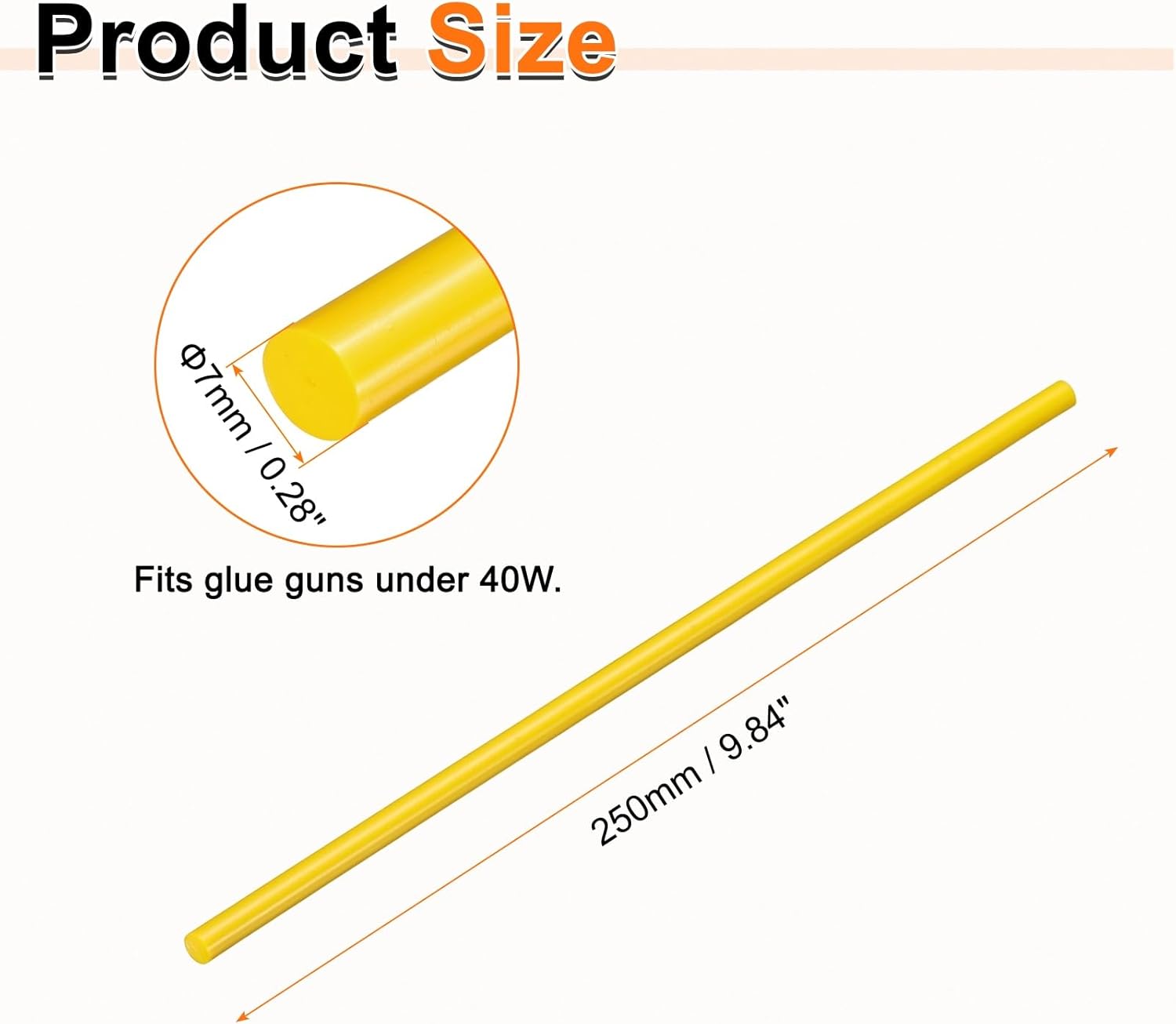 - Size - Hot glue sticks size: 7 x 250mm / 0.28 x 9.84 inch (D*L); Curing time: 10–15 seconds; Working temperature: 150°C (302°F); Softening point: 75°C (167°F).