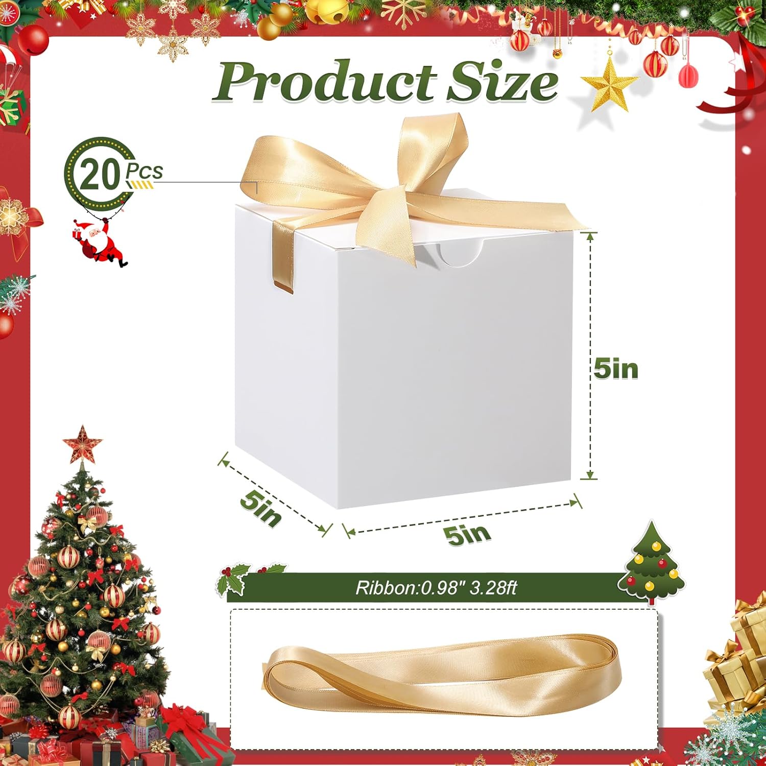 - Size: Wedding gift boxes :5"x 5"x 5", Ribbon: 0.98 inch Width, 3.28ft length. cube shape ,prefect size for candies, chocolates, cookies, jewelry, bracelet, ring ,craft ,and other small gifts